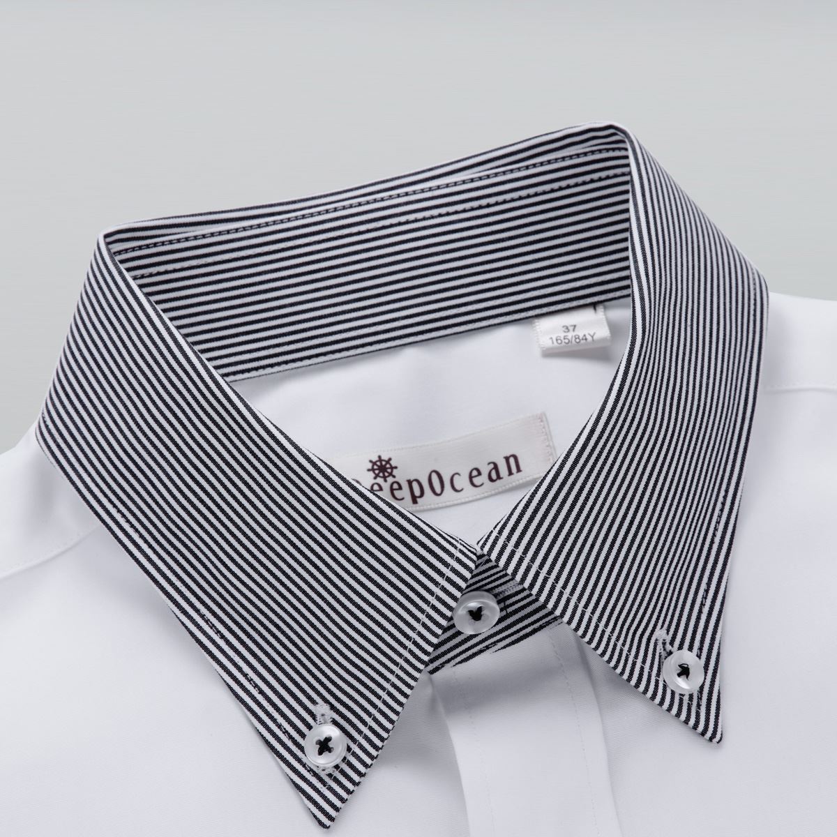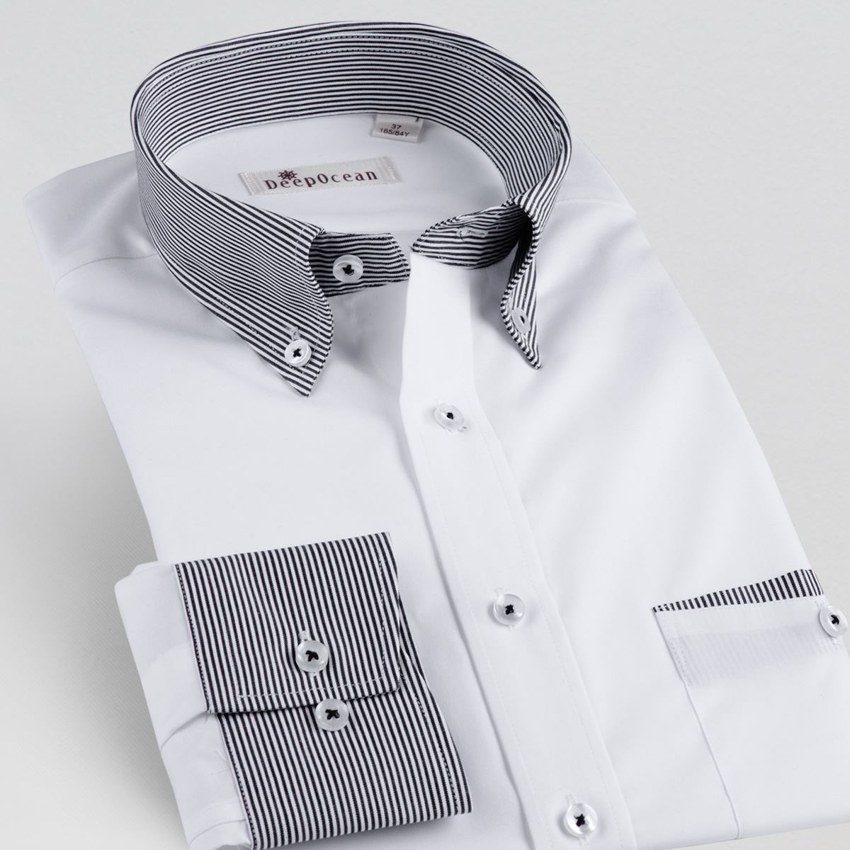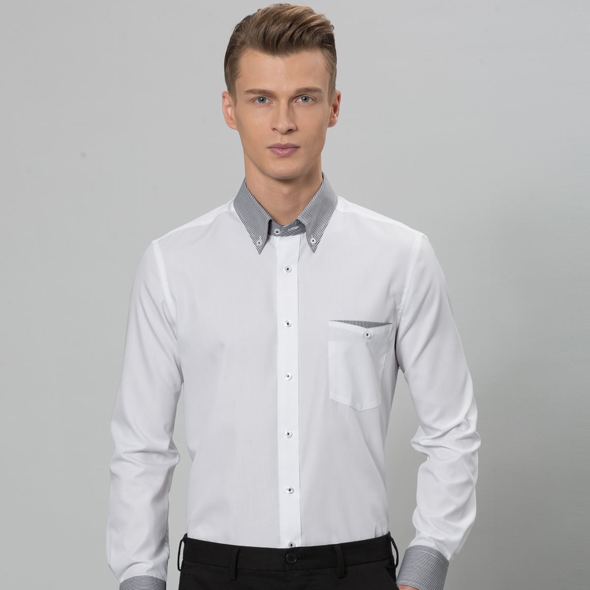 / 秋季新品純棉襯衫男長袖純色拼接條紋袖口商務男裝免燙男裝襯衣