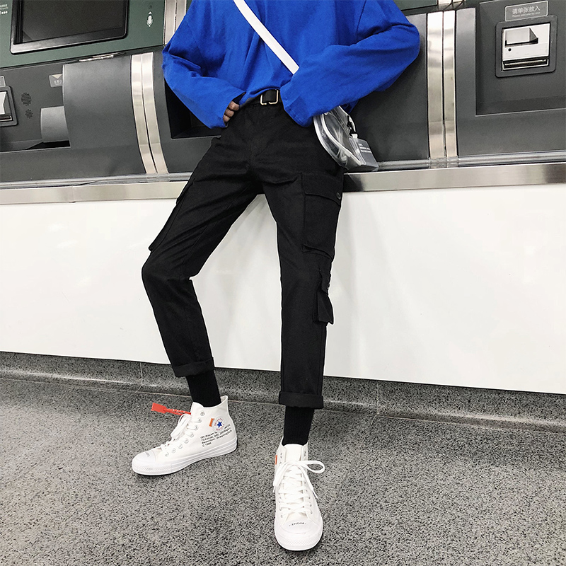 / 褲子男士韓版潮流工裝褲休閑褲哈倫褲百搭ins文藝修身秋季九分褲