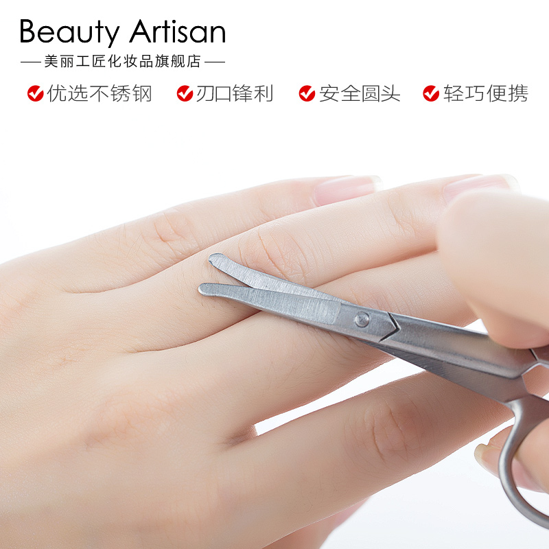 / 便攜修眉剪圓頭便攜修剪眉毛鼻毛假睫毛進口不銹鋼鐵盒