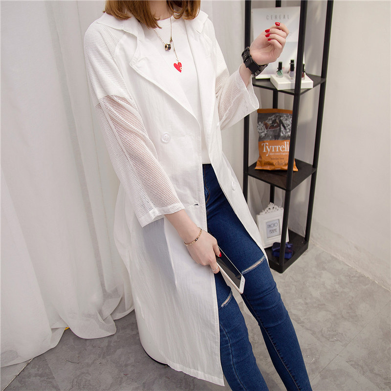/ 防曬衣女夏新款潮白色長款透視風衣外套女裝春季韓版上衣百搭