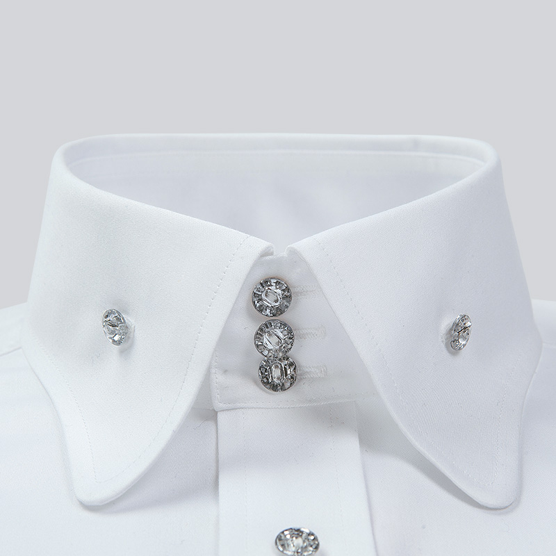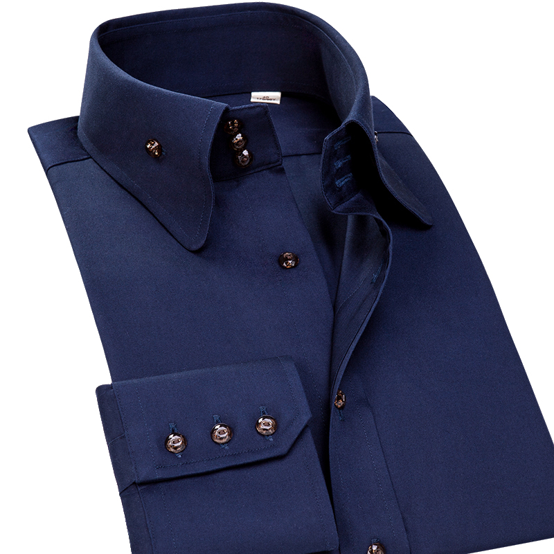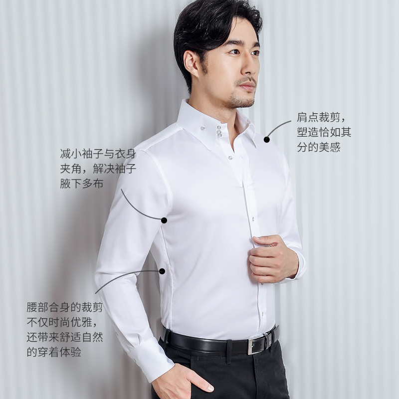 絲光棉純棉免燙圓角高領襯衫男長袖修身青年男士襯衣韓版帥氣潮流