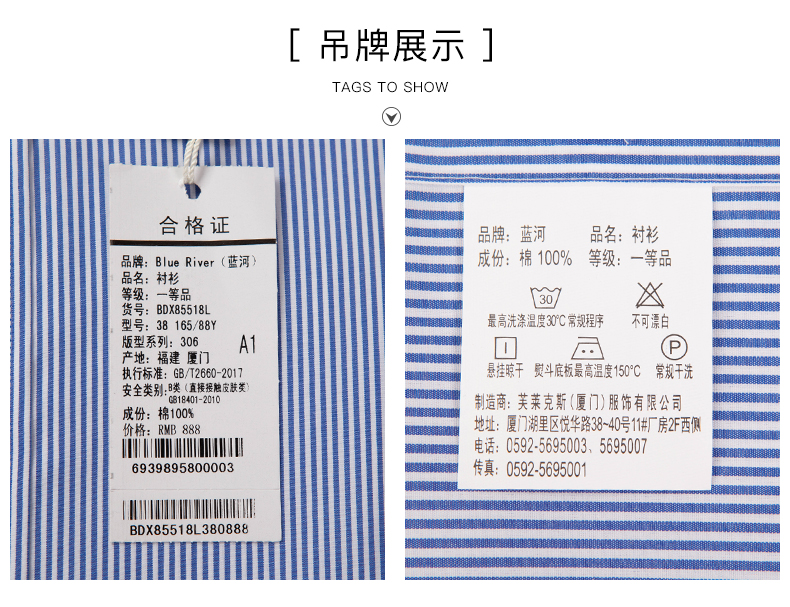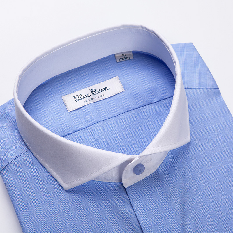 / BLUE RIVER/藍河一字溫莎領襯衫男長袖襯衣男士純棉修身商務秋裝