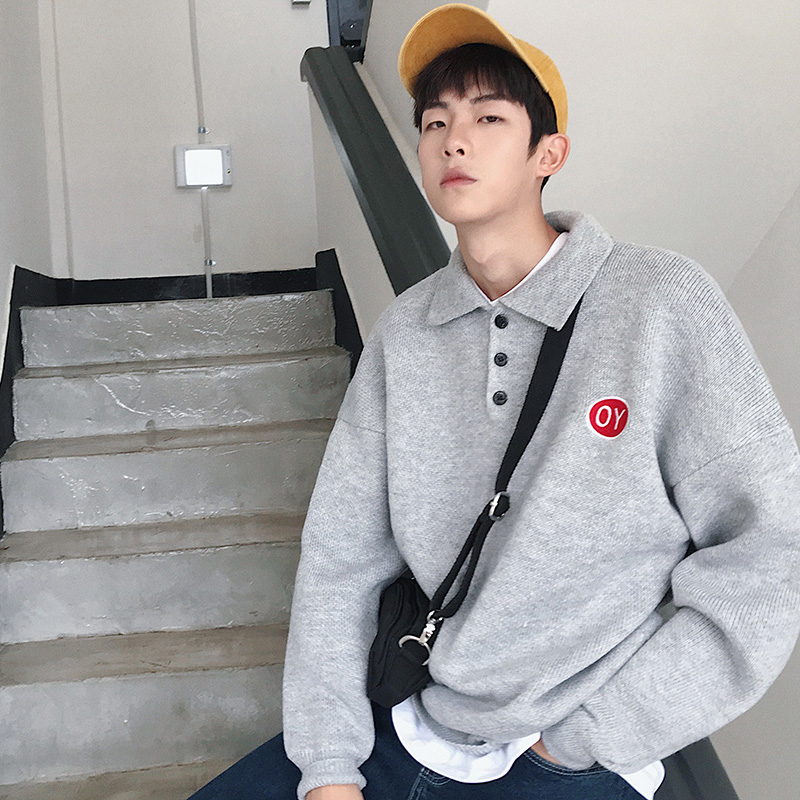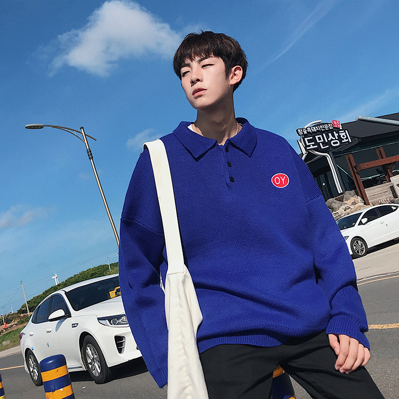/ 文藝男女店秋季韓版百搭polo毛衣男士秋季潮流毛線衫寬松翻領男裝