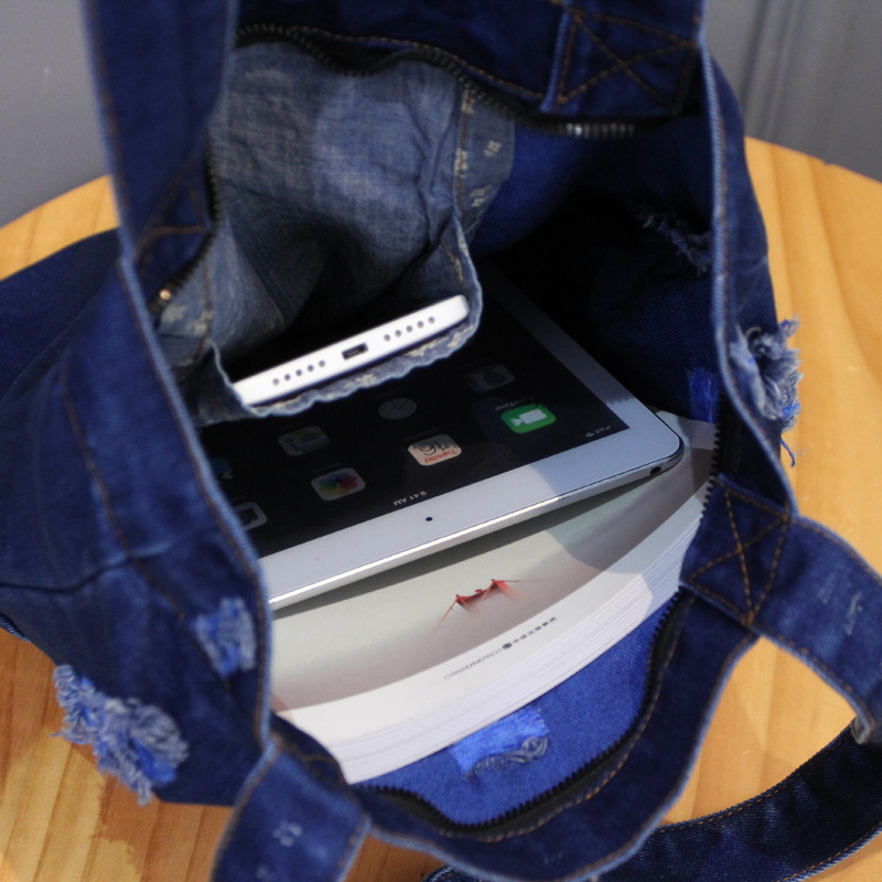 單肩包女 新款帆布手提包女大包簡約日韓破洞顏色牛仔包女