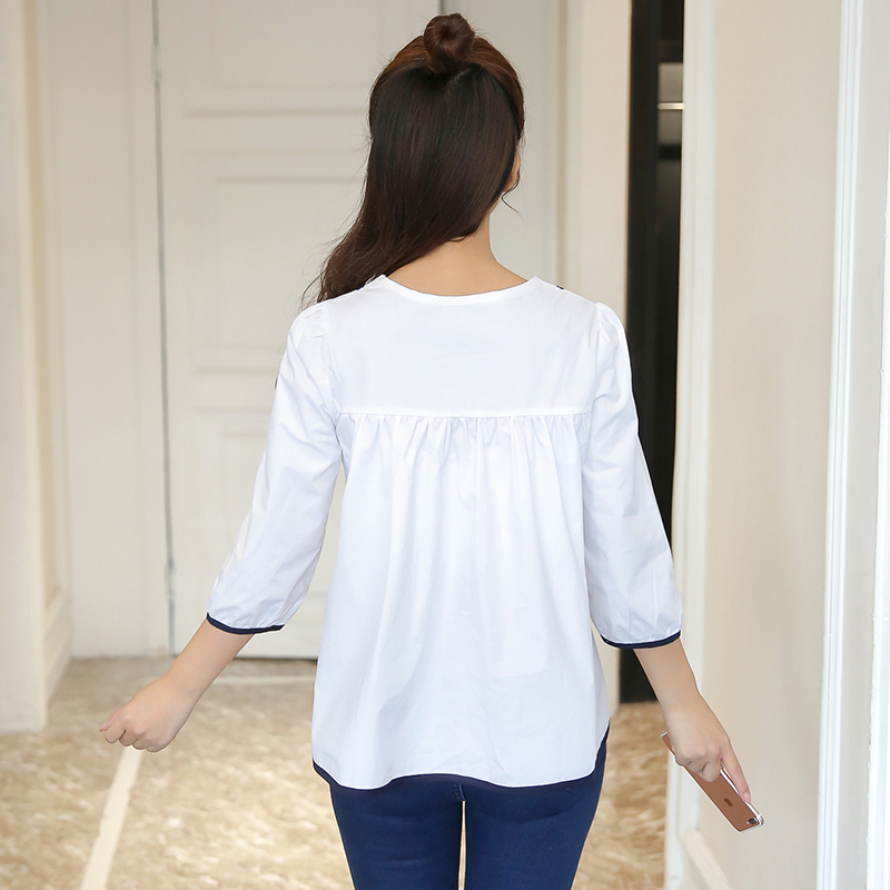 新款春季民族風刺繡娃娃衫寬松大碼七分袖短款襯衫女A字上衣