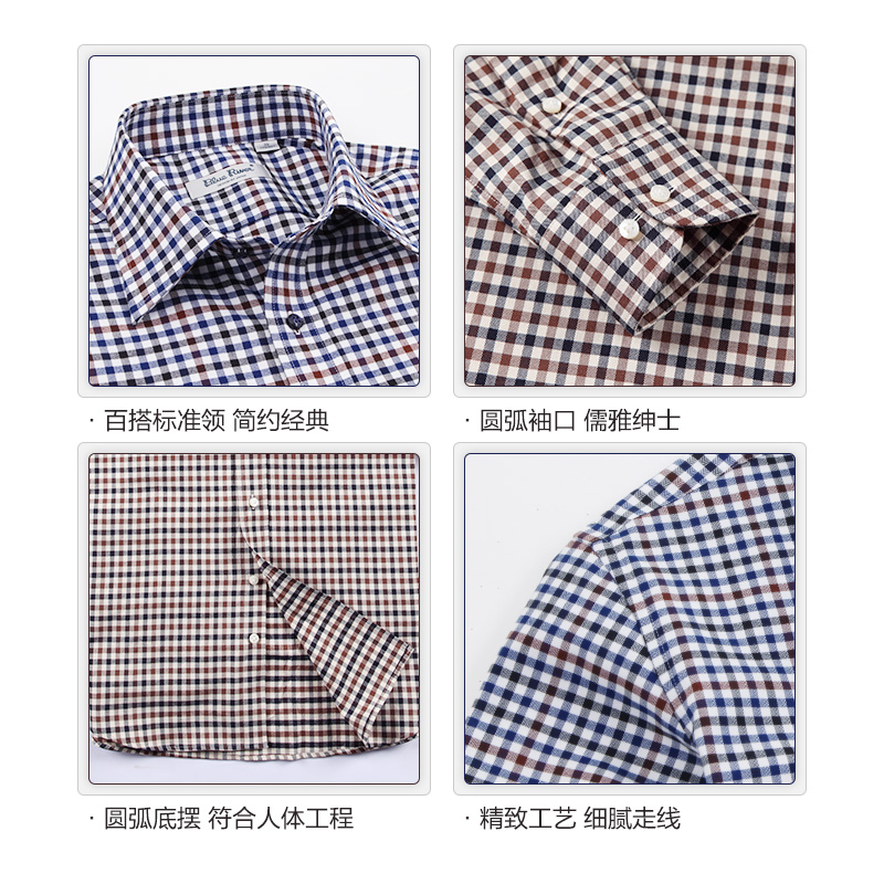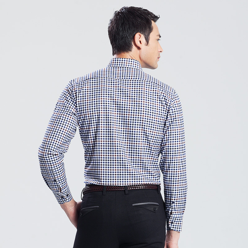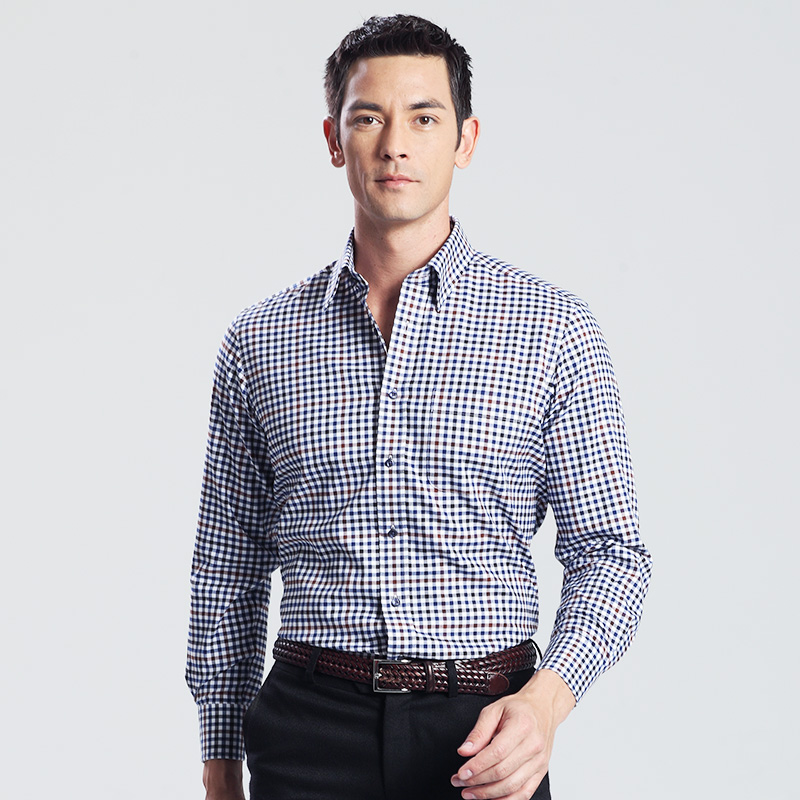 格子襯衫男長袖 英倫雅痞純棉商務秋裝免燙休閑寬松襯衣 高檔男裝