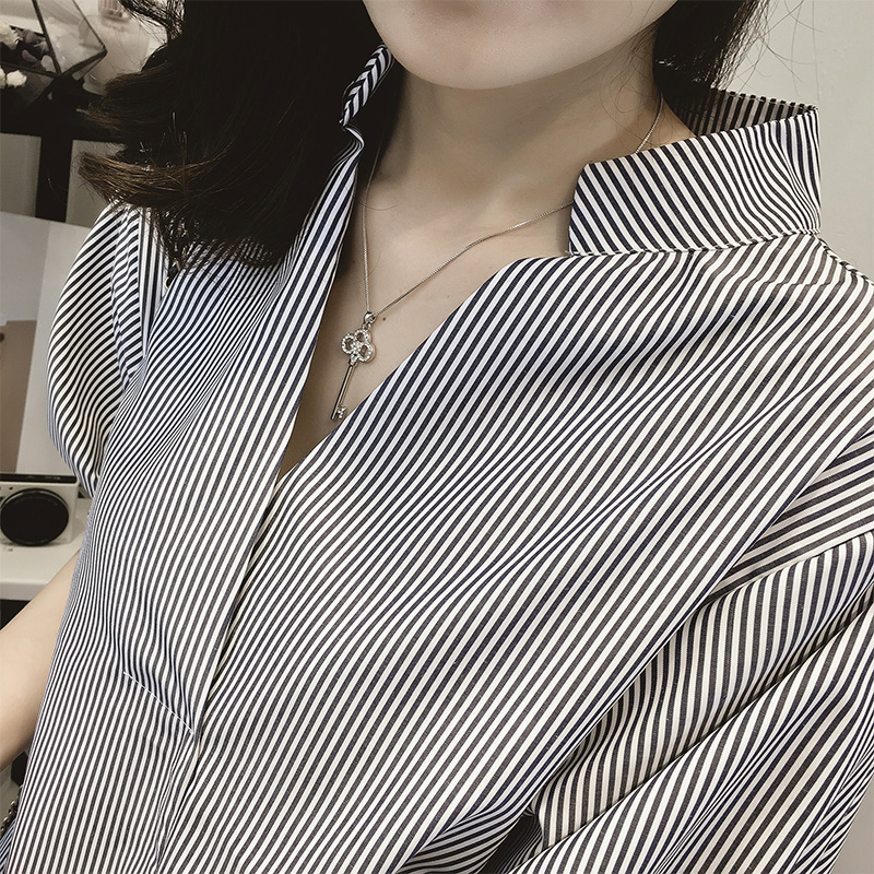 夏裝2017新款條紋襯衫女韓范寬松蝙蝠袖上衣學生百搭休閑立領襯衫