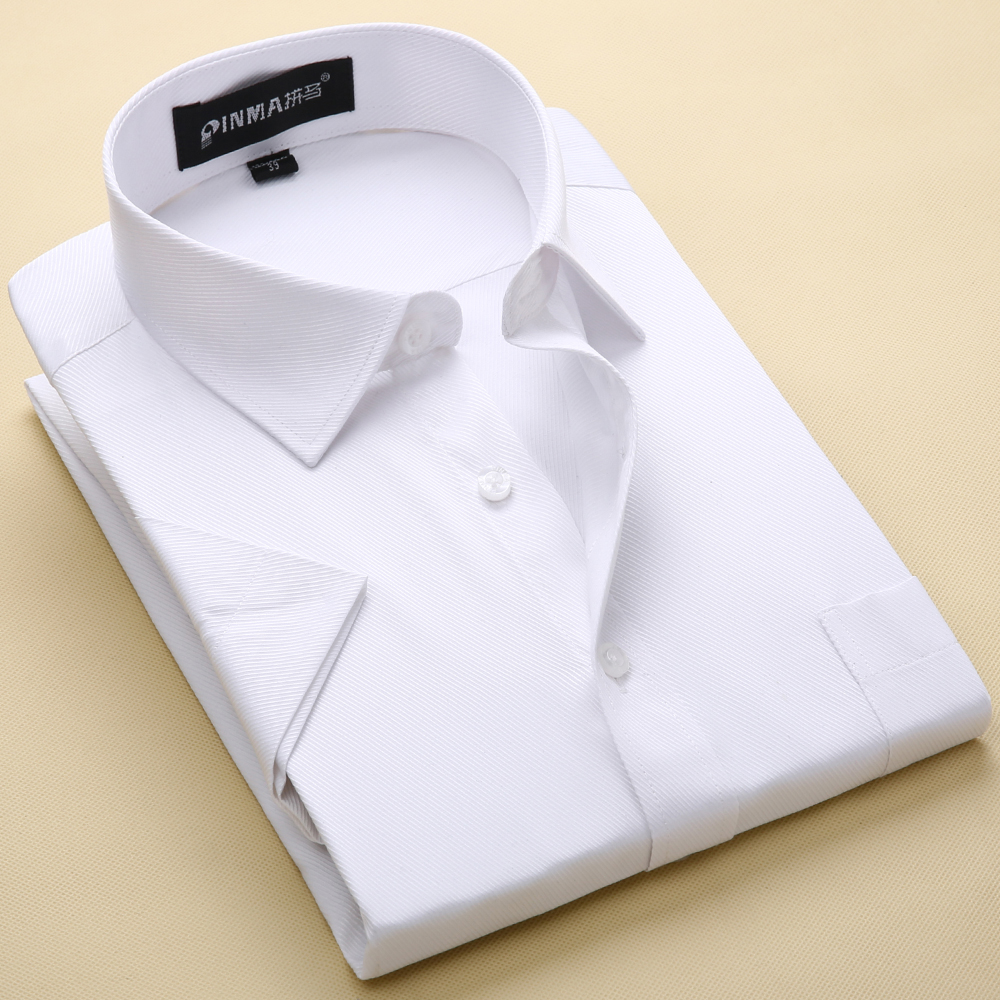 / 夏季短袖白襯衫男士修身純色商務工裝職業正裝襯衣加大碼男裝寸衫