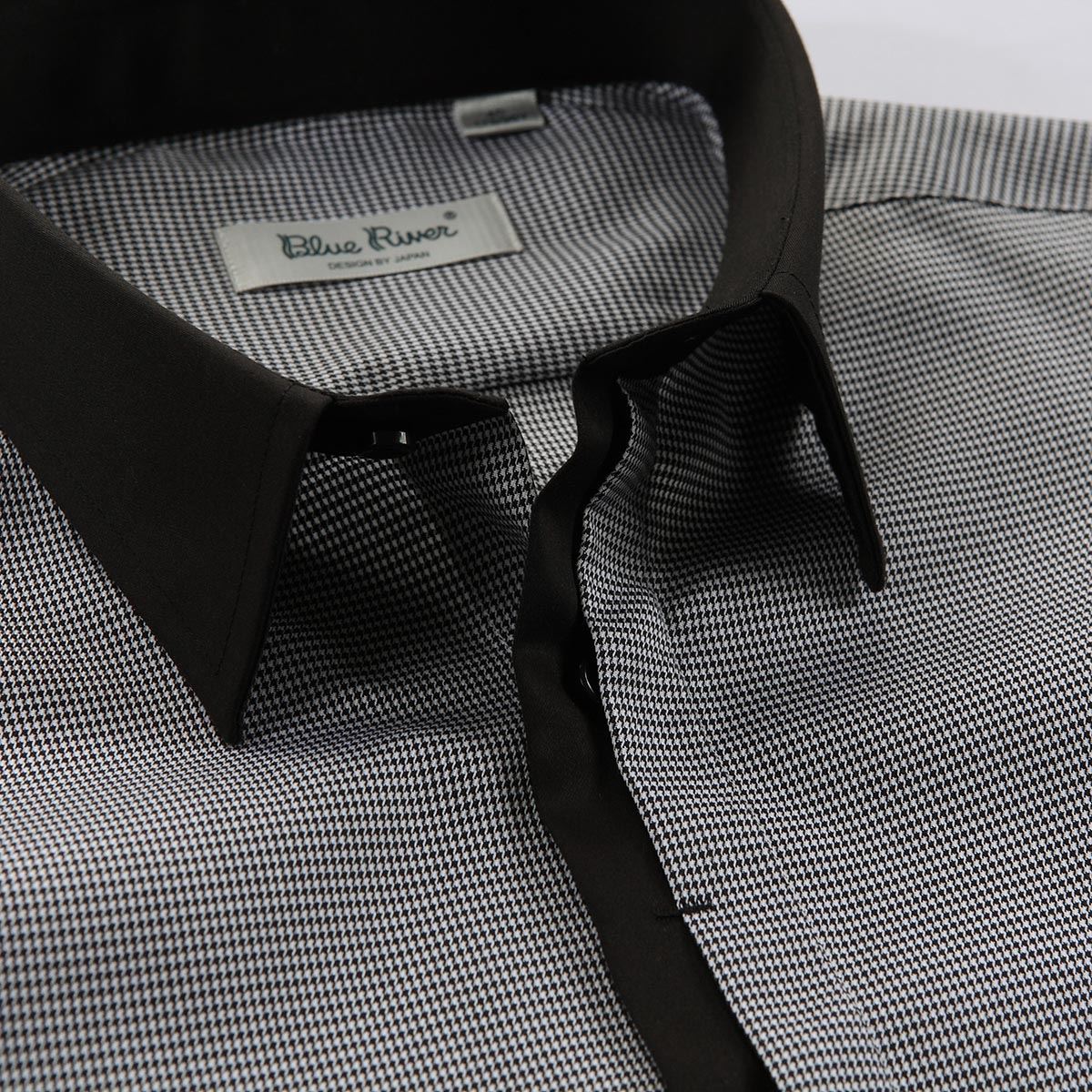 / 藍河襯衫長袖襯衣商務休閑男裝修身純棉千鳥格純棉免燙男裝正裝