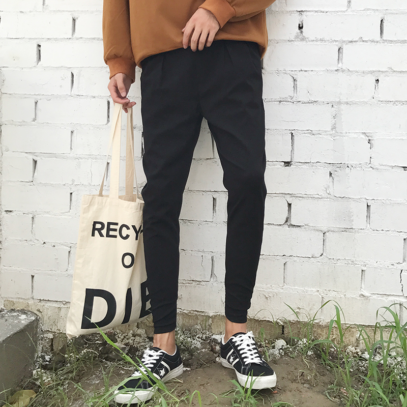 / 秋季褲子男士修身韓版古著vintage休閑褲潮流運動小腳褲男褲束腳