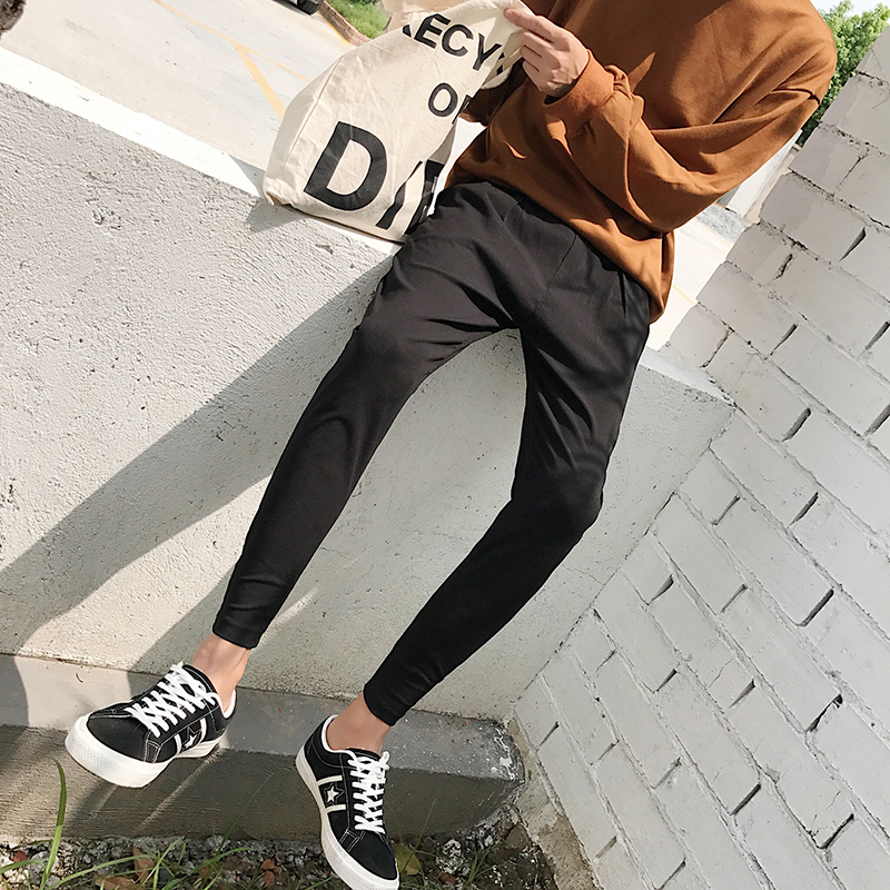 秋季褲子男士修身韓版古著vintage休閑褲潮流運動小腳褲男褲束腳