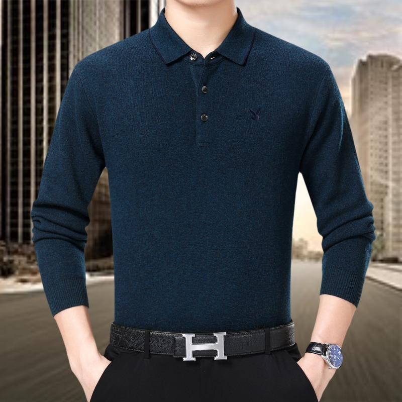 / 冬裝花花公子正品中年男士山羊絨毛衣商務男裝翻領加厚大碼羊毛衫