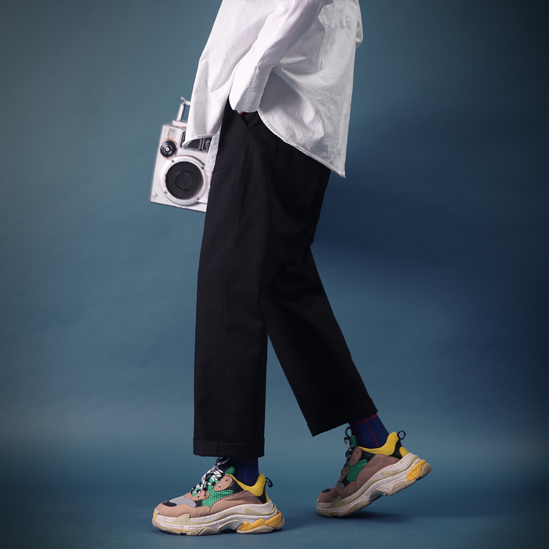 / 文藝男女店韓版潮流原宿秋季男士褲子寬松工裝褲冬季休閑褲九分褲
