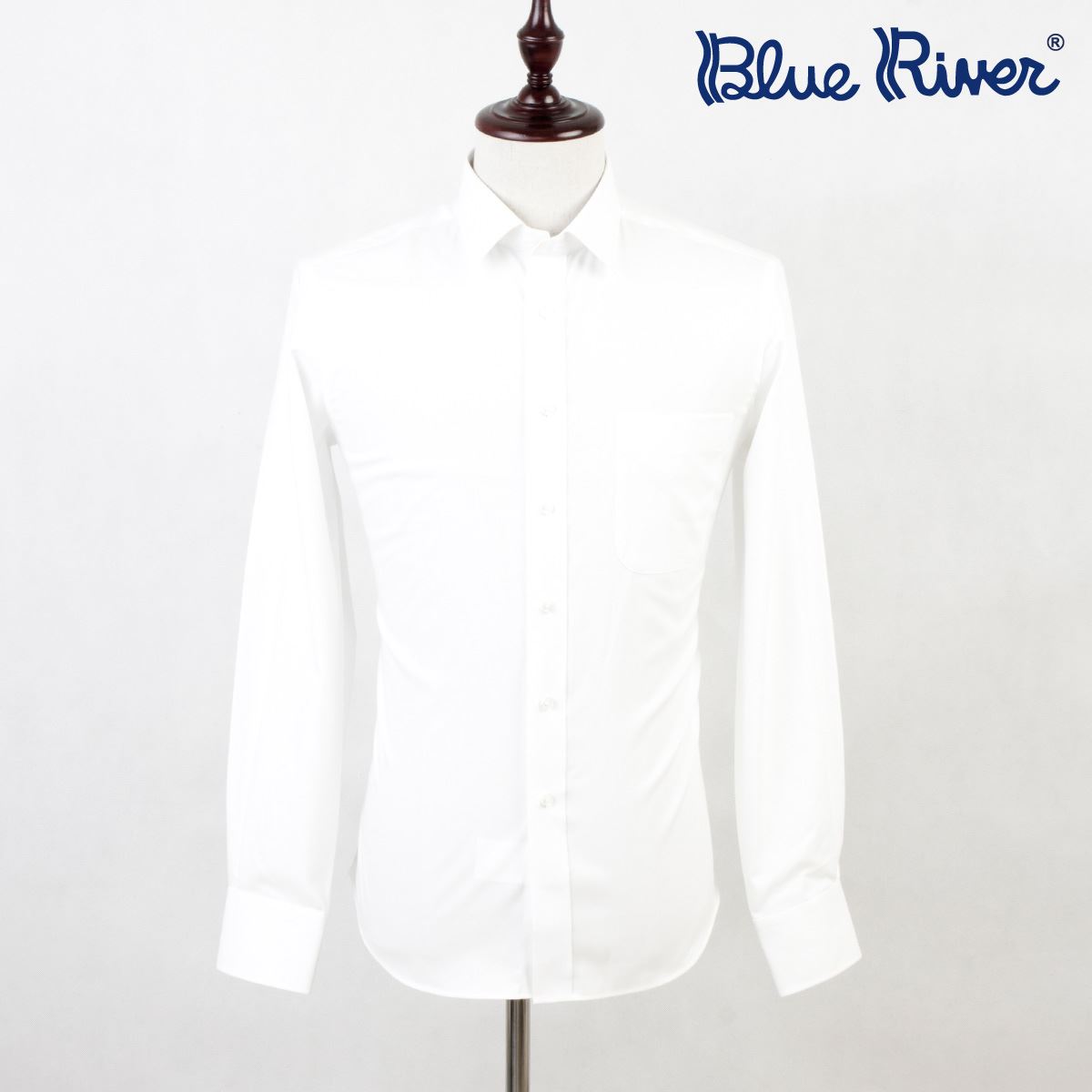 藍河2018新款男士長袖襯衫白色商務修身韓版襯衣標準領
