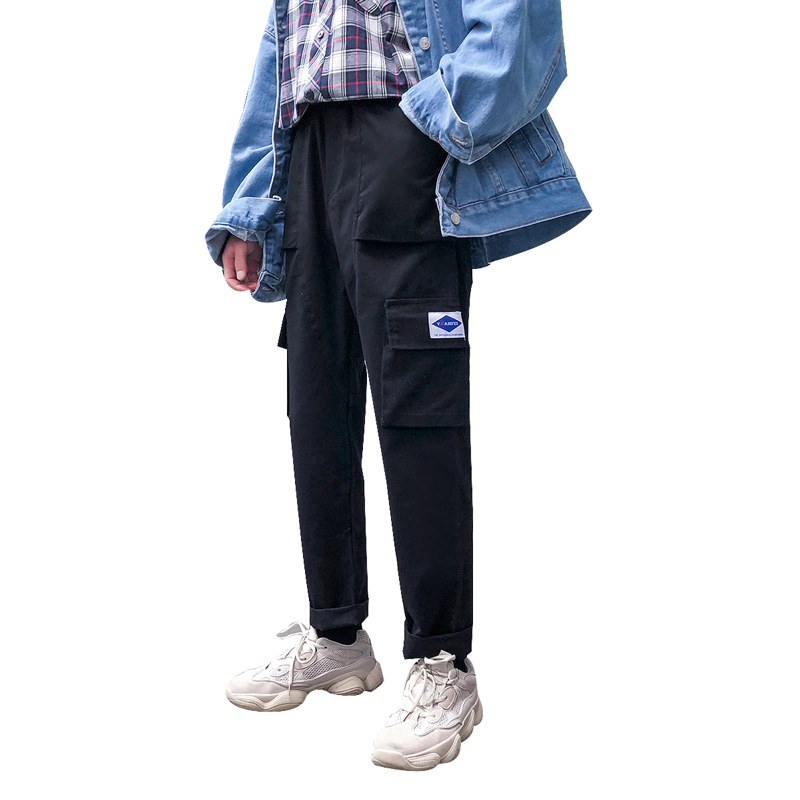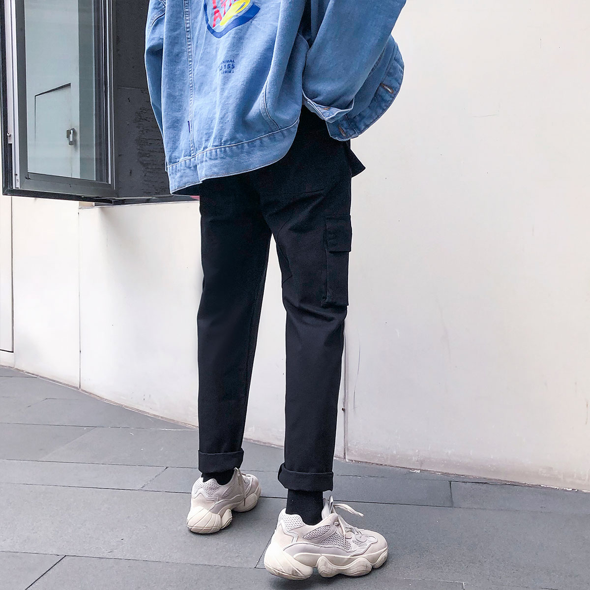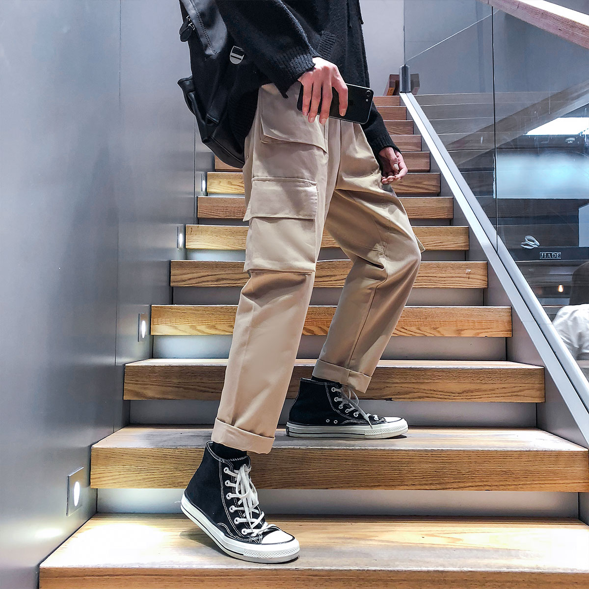文藝男女店秋季新款潮流男士休閑褲韓版寬松工裝褲九分直筒褲男褲