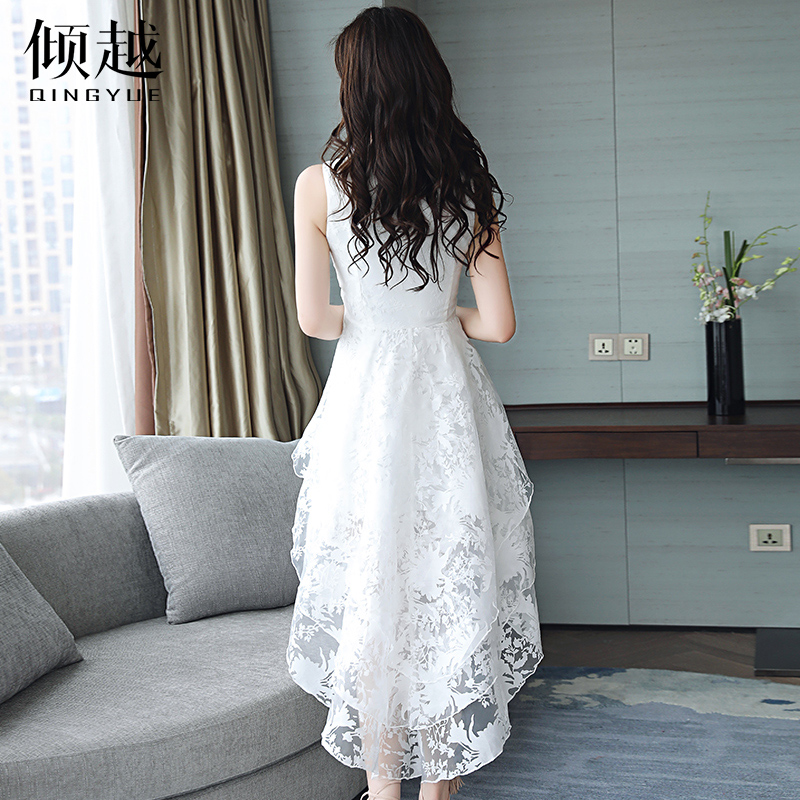 / 2017夏季歐根紗小仙女連衣裙蓬蓬裙女中長款無袖雪紡魚尾禮服裙潮