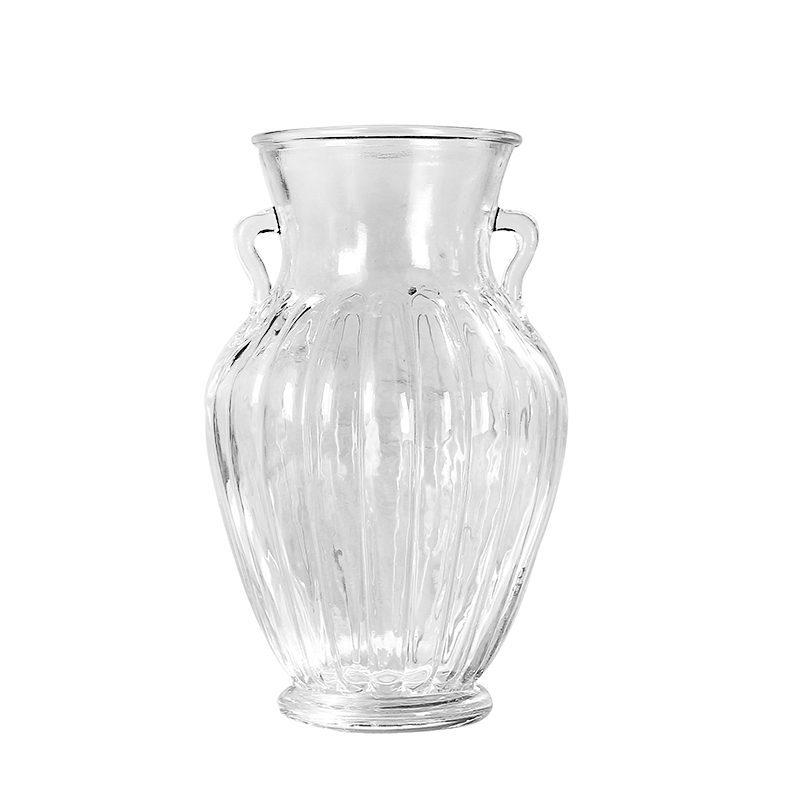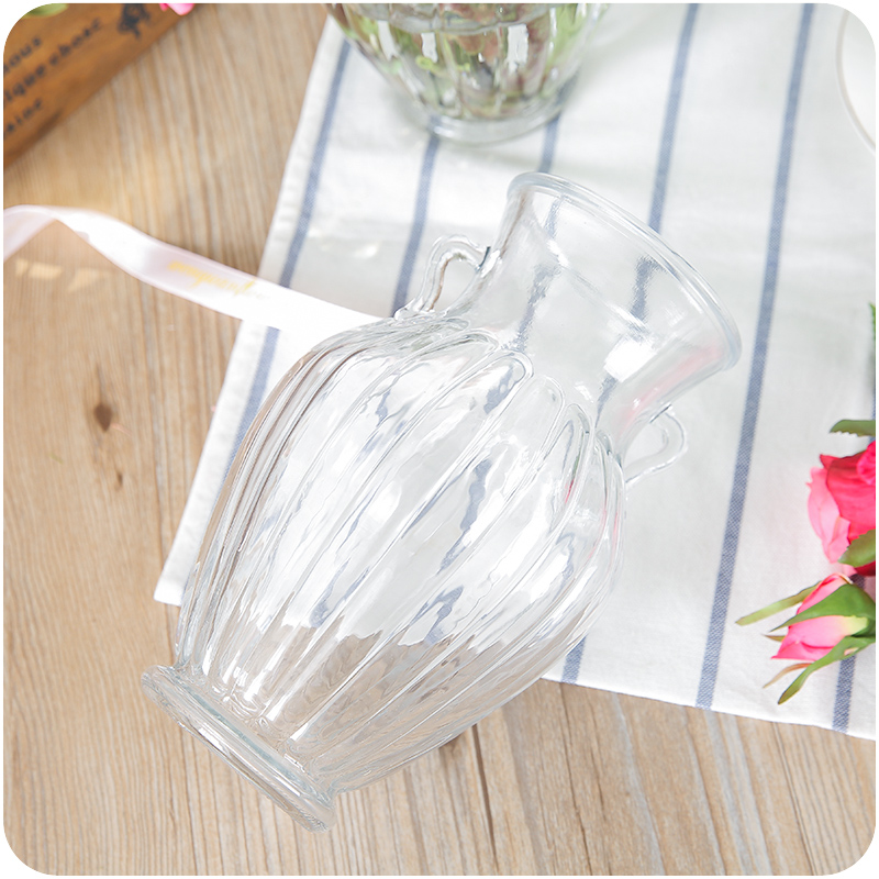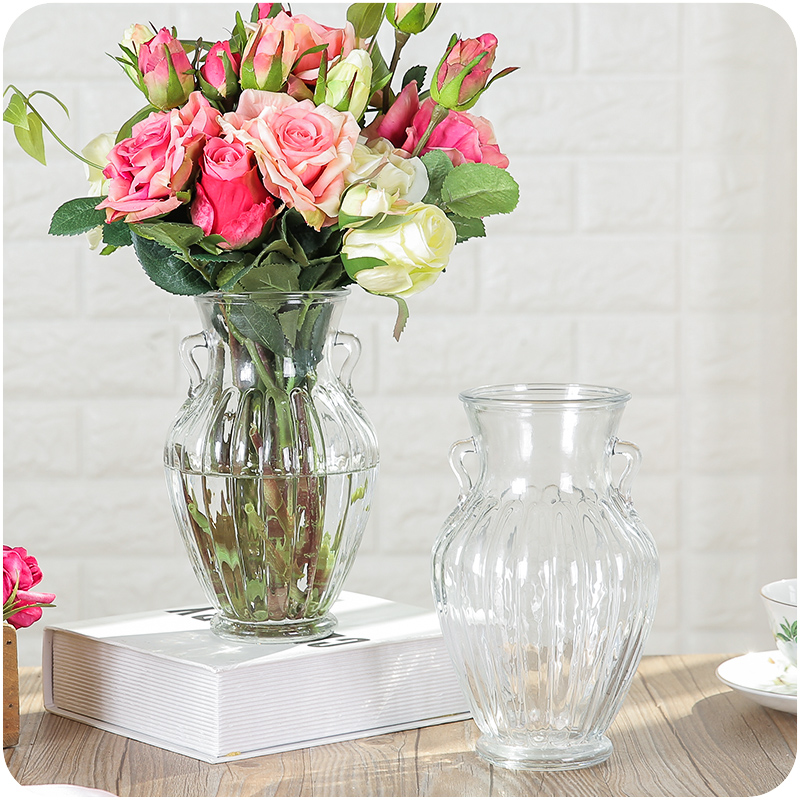 歐式高透明雙耳水晶玻璃花瓶居家辦公插花擺件裝飾品時尚綠植花器