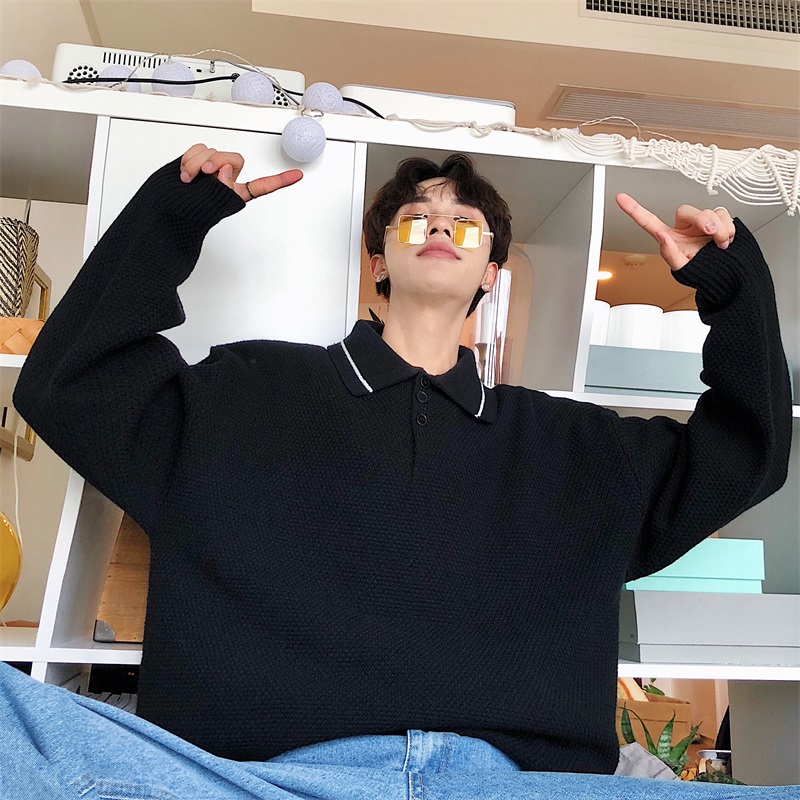 文藝男女店polo套頭毛衣男士秋季韓版針織衫潮流線衣秋裝寬松初秋