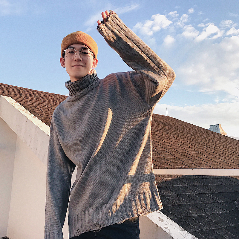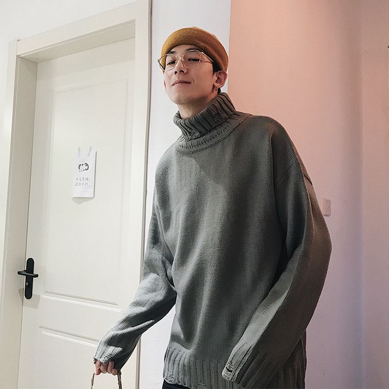 / 文藝男女店套頭高領毛衣男秋季潮流針織衫韓版休閑線衣情侶秋裝