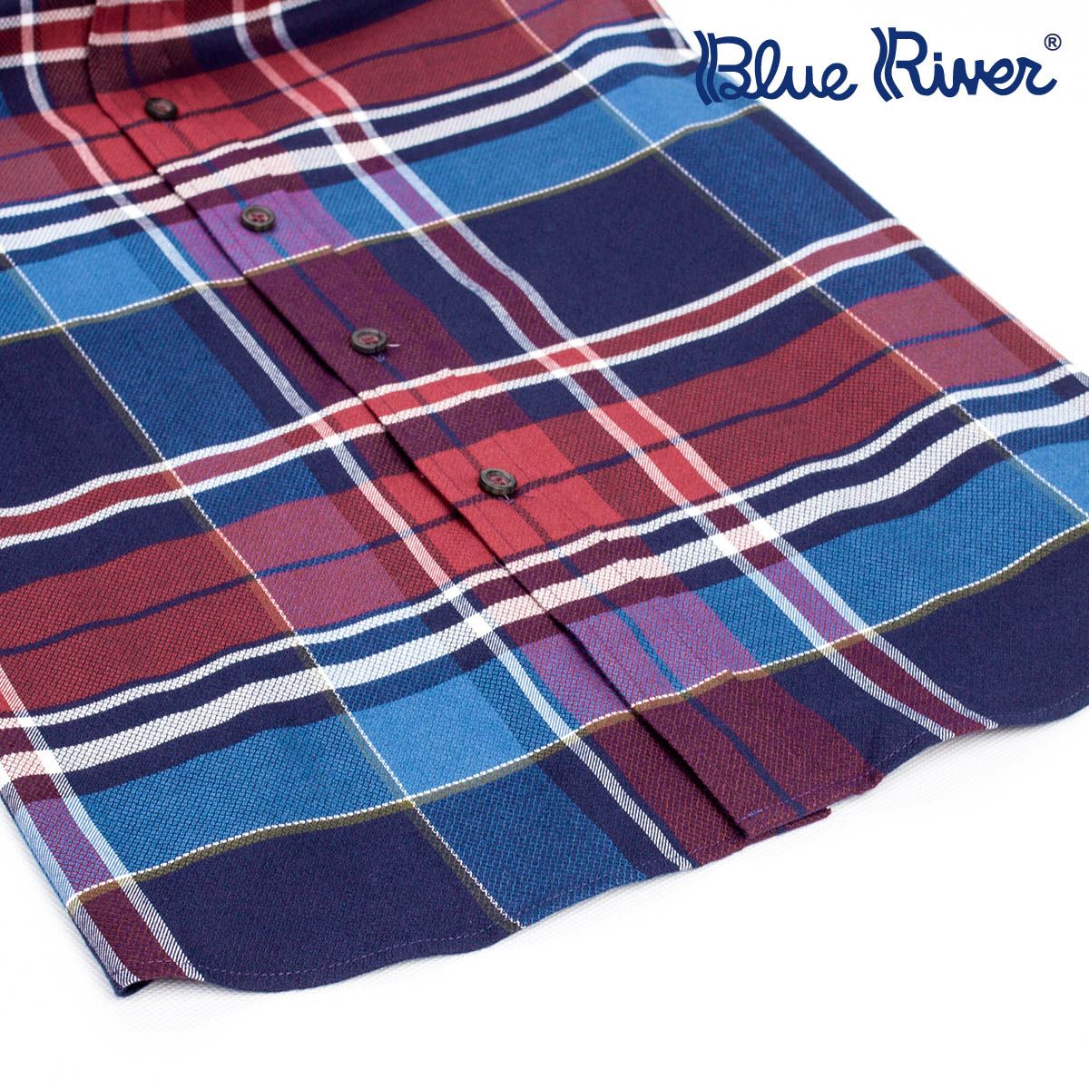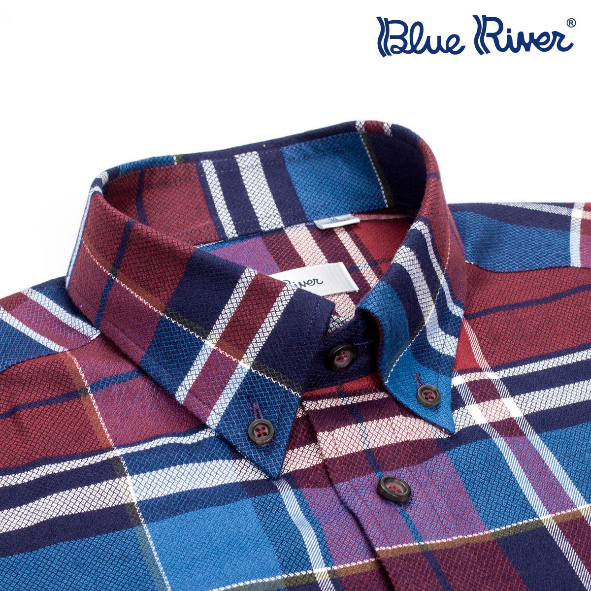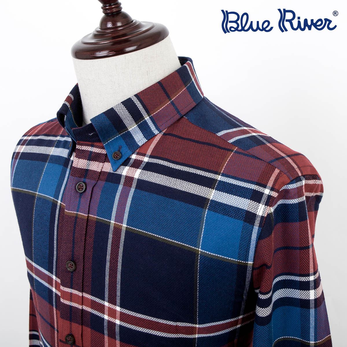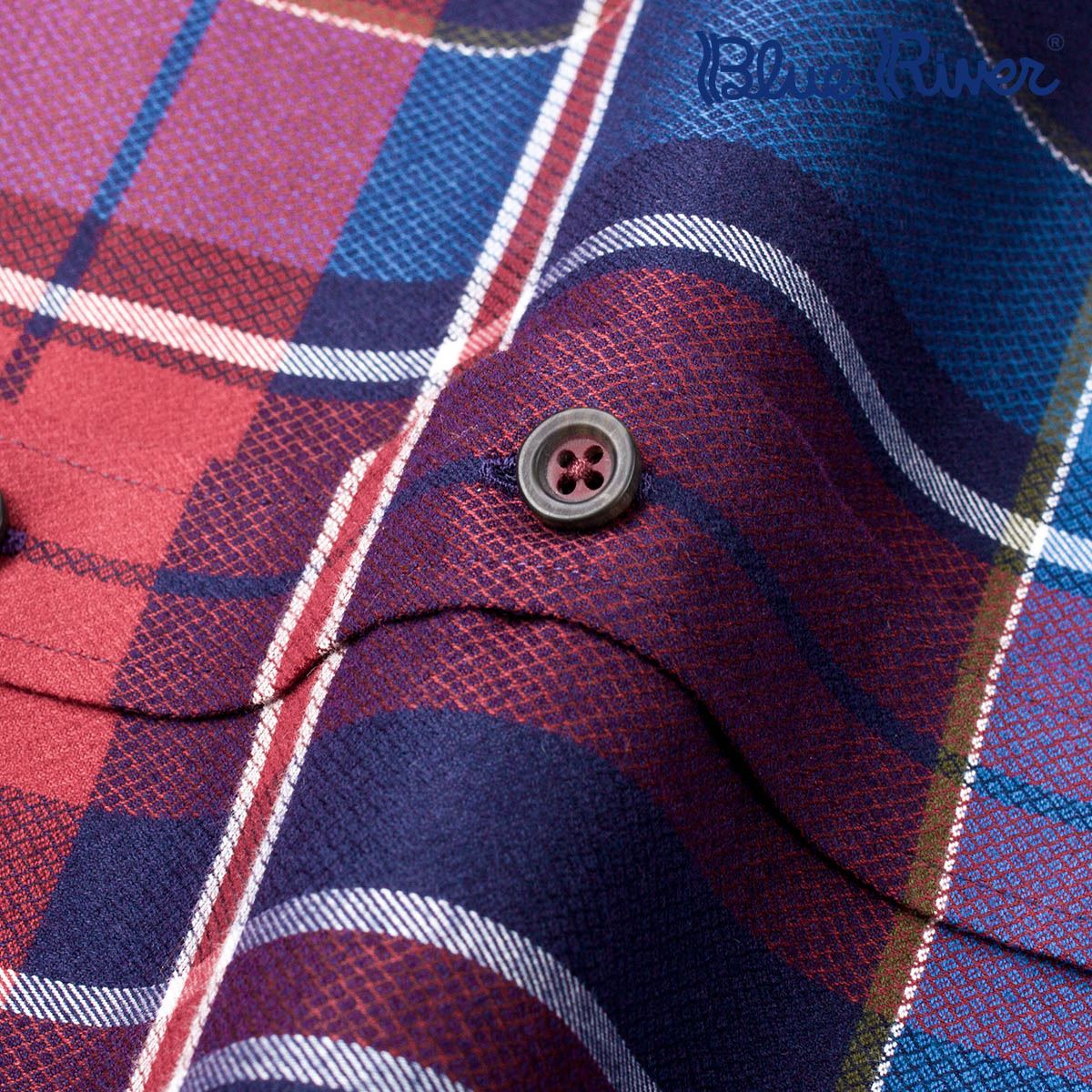 / BLUE RIVER/藍河萊賽爾纖維男士保暖長袖襯衫休閑紅色大格子襯衣