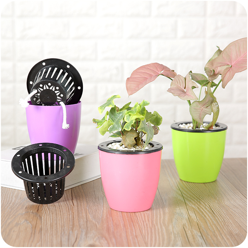 塑料花盆糖果彩色圓形水土2 用花卉盆栽免澆灌自動儲水兩件套花器