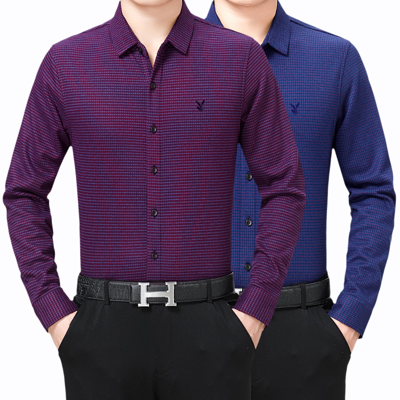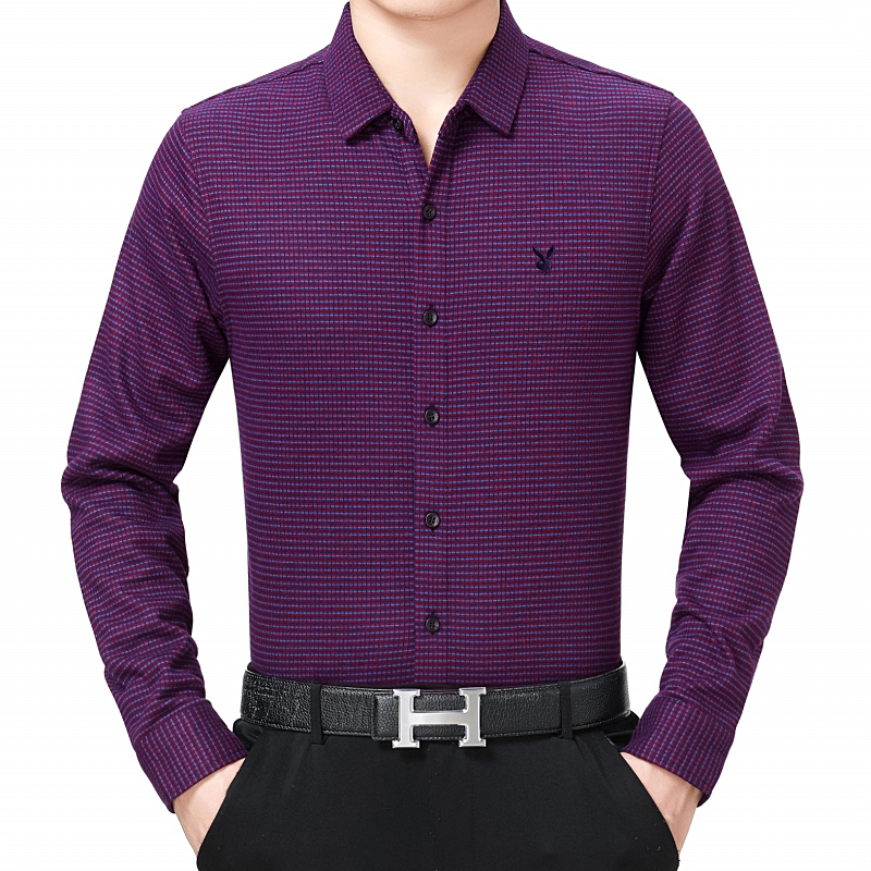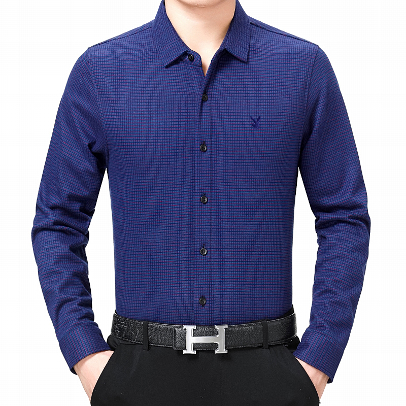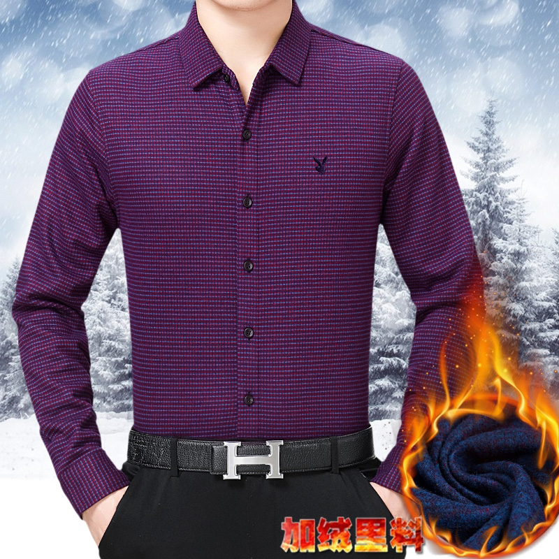 花花公子正品男裝長袖保暖襯衫中年男士加絨加厚格子商務襯衣冬裝