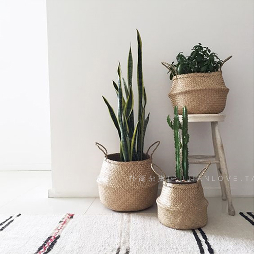 樸簡|ins北歐風格家居收納籃 手工草編臟衣籃 折疊筐 植物花籃
