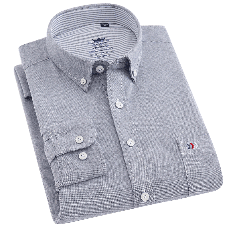 春裝全棉牛津紡扣領男士襯衫商務休閑長袖純棉修身青年格子襯衣潮