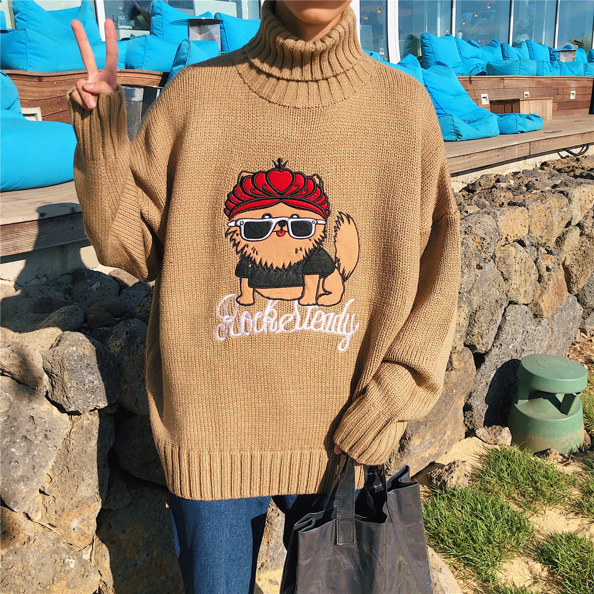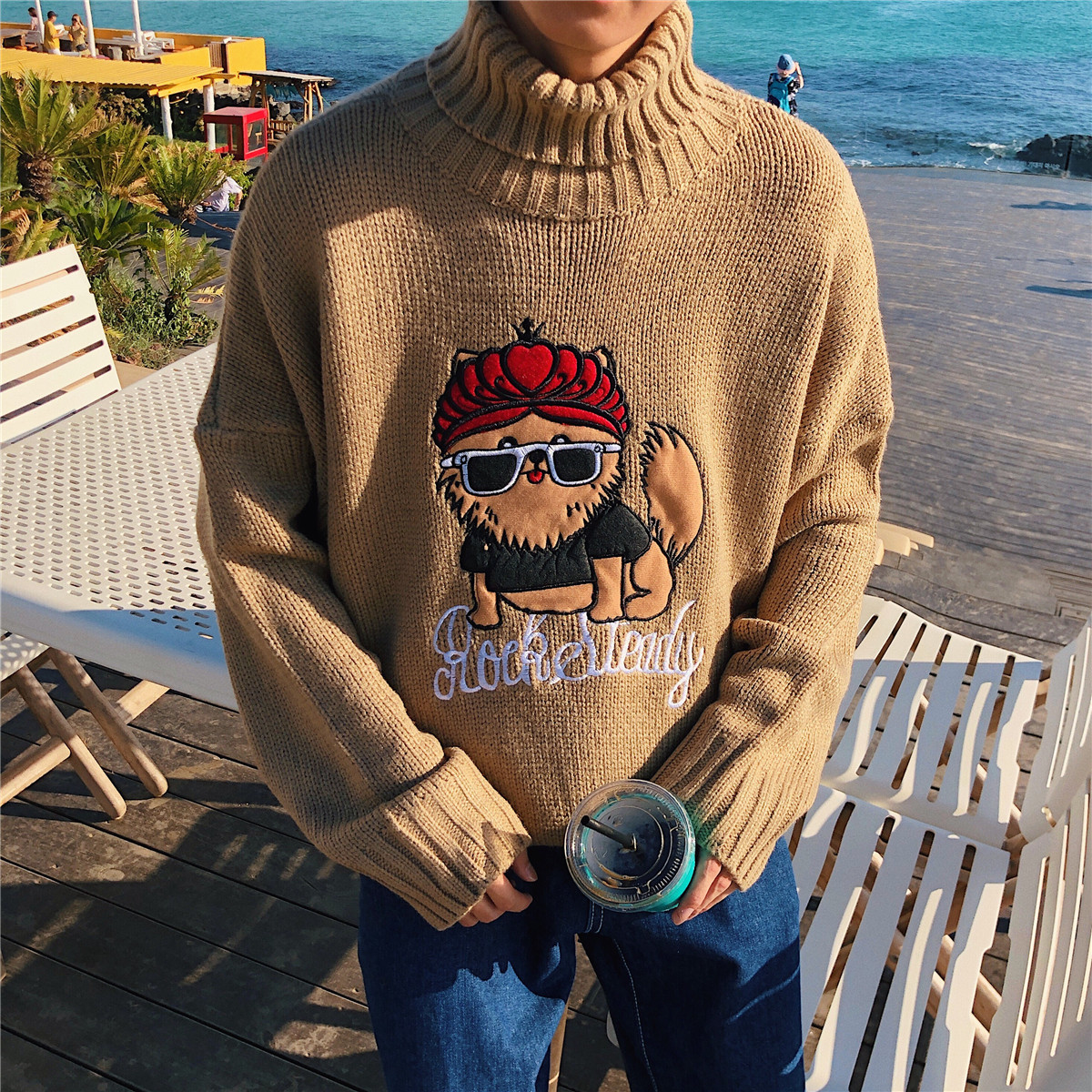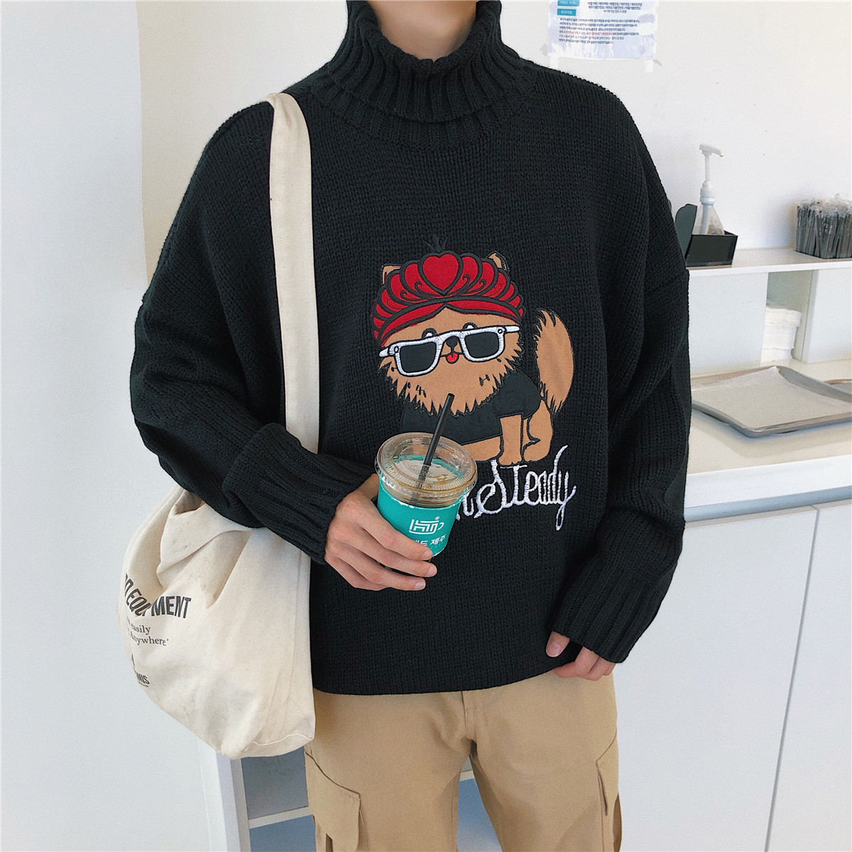 / 文藝男女店毛衣男士秋冬季潮流寬松高領針織衫韓版外套男百搭線衫