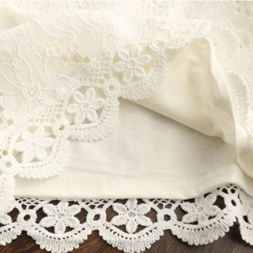 / 七分袖鏤空罩衫短裝雪紡半袖女夏2017新蕾絲衫搭配半身長裙的上衣