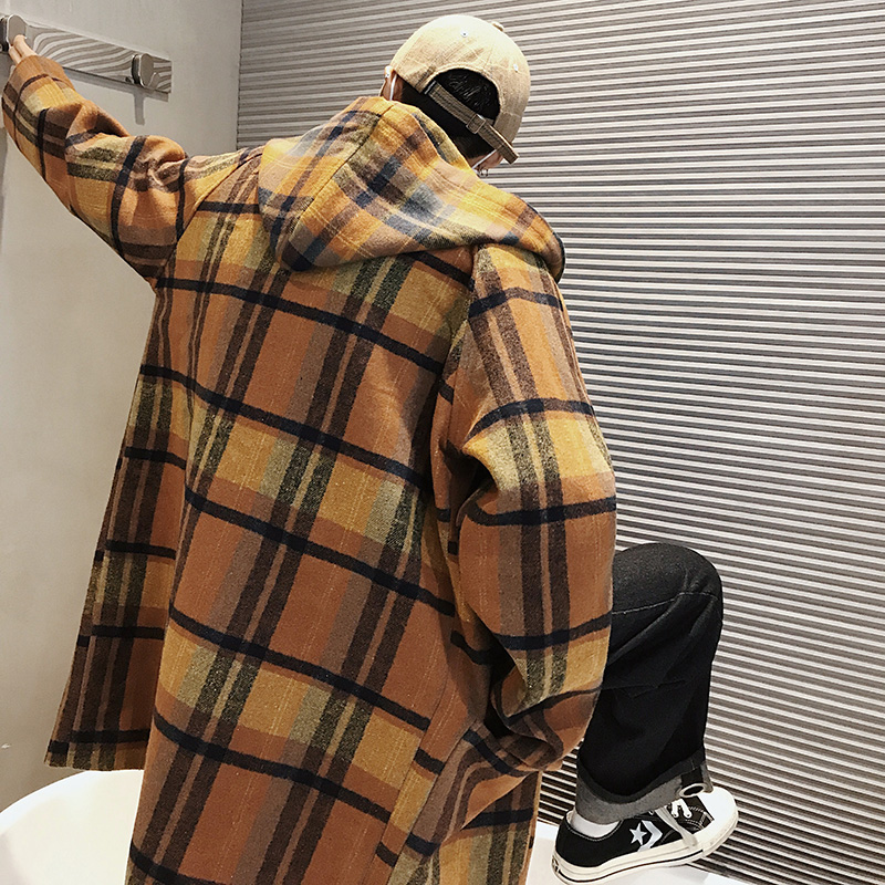 / 文藝男女店大衣男中長款秋季潮流格子毛呢外套韓版寬松休閑秋冬裝