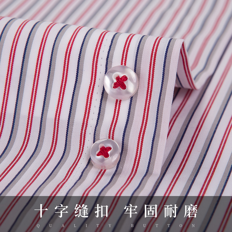 / 夏季純棉免燙抗皺條紋襯衫男短袖襯衣上班正裝商務時尚修身薄款