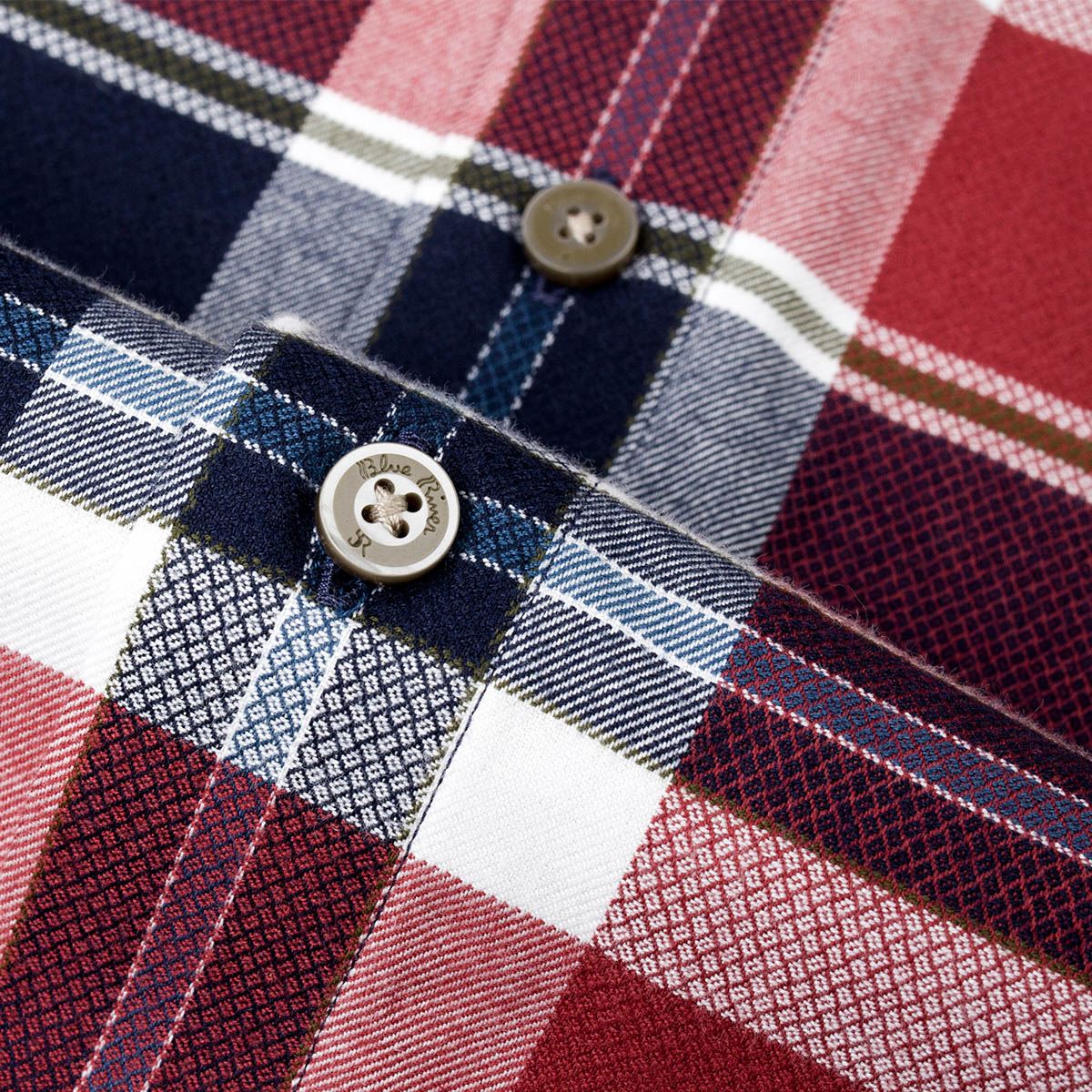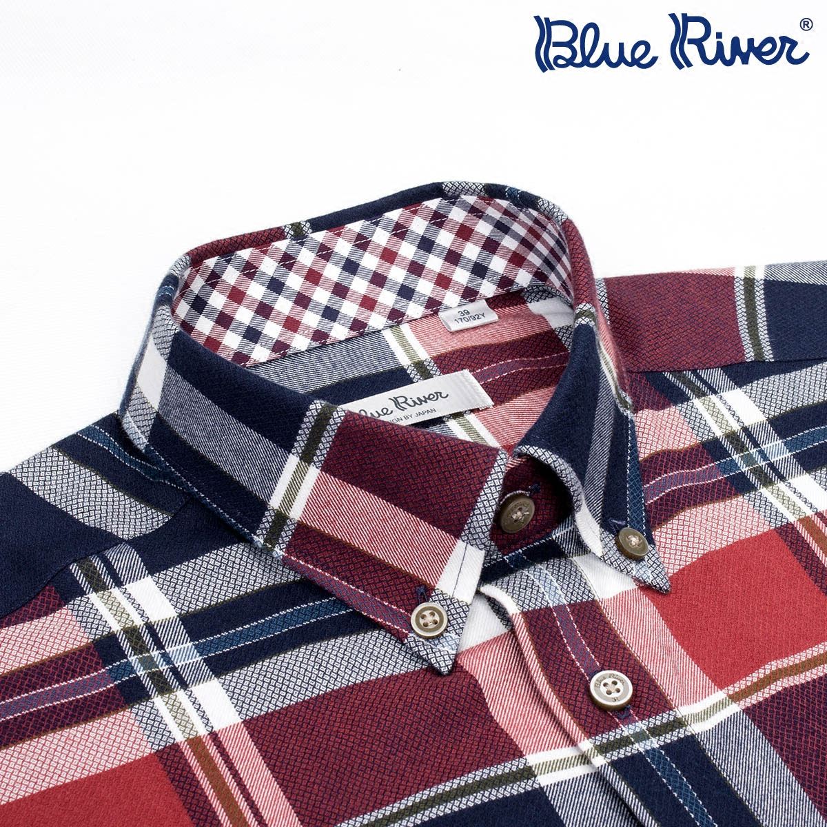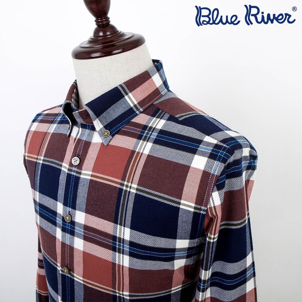 / 藍河紅色格子襯衫男長袖修身彩色格紋保暖天絲棉襯衣2018秋新品