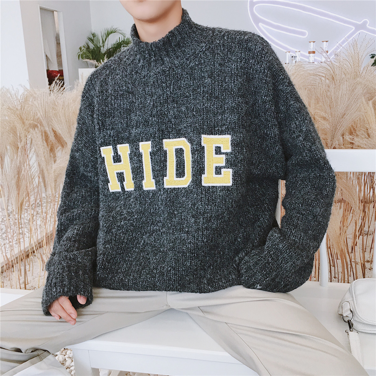 文藝男女店立領男士寬松毛衣精神小伙韓版潮流針織衫外套秋季線衣