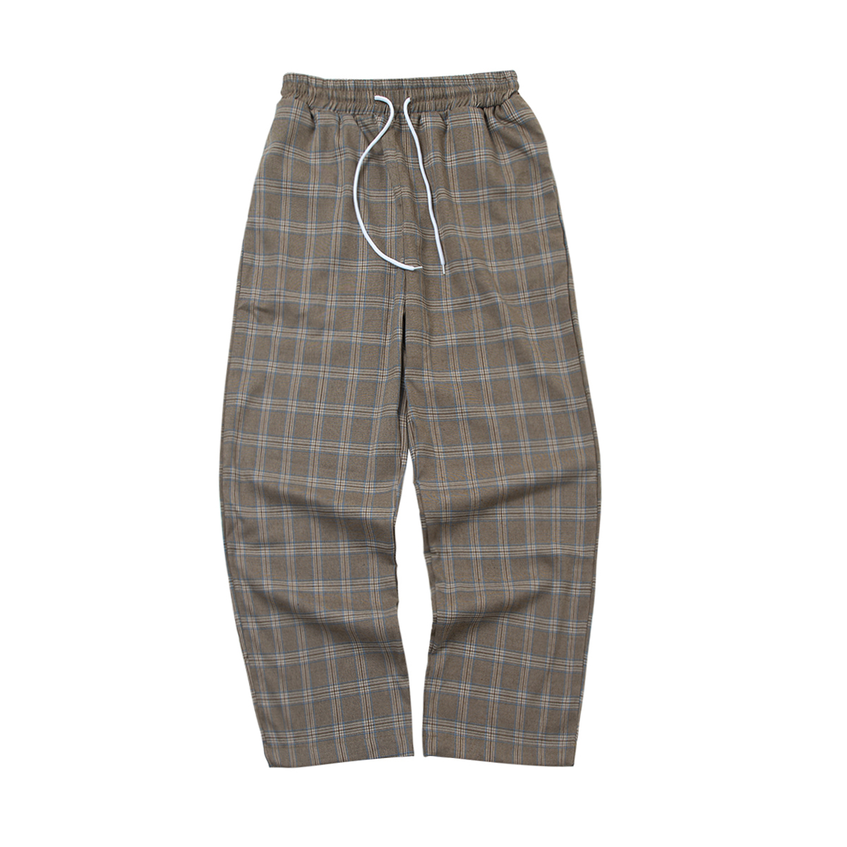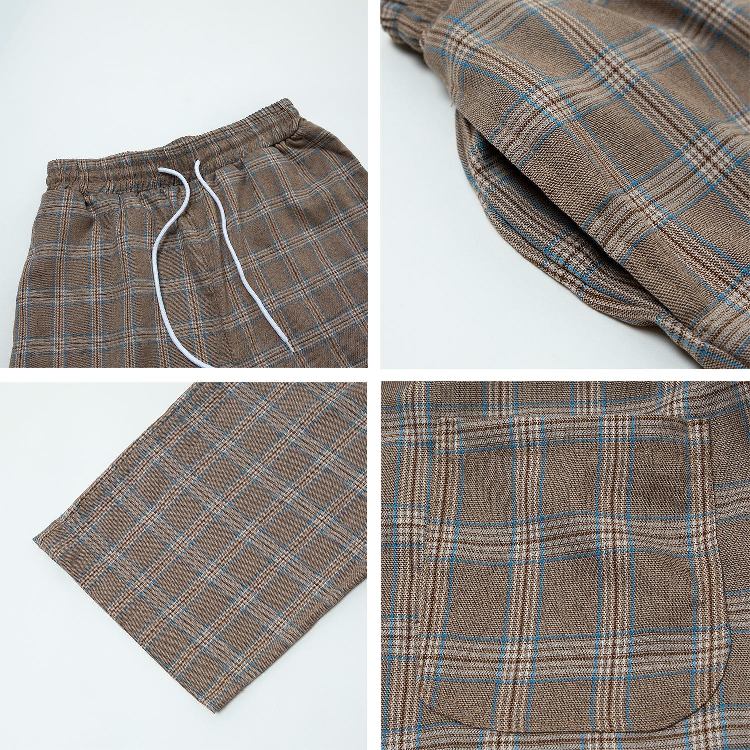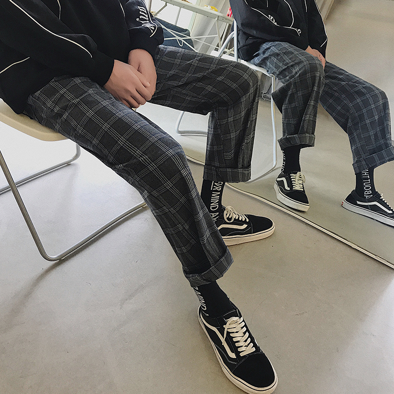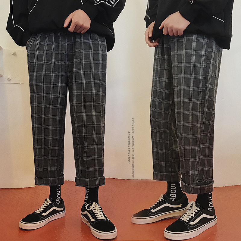 / 男士秋季休閑褲韓版潮流寬松九分褲港風格子情侶褲子男復古直筒褲