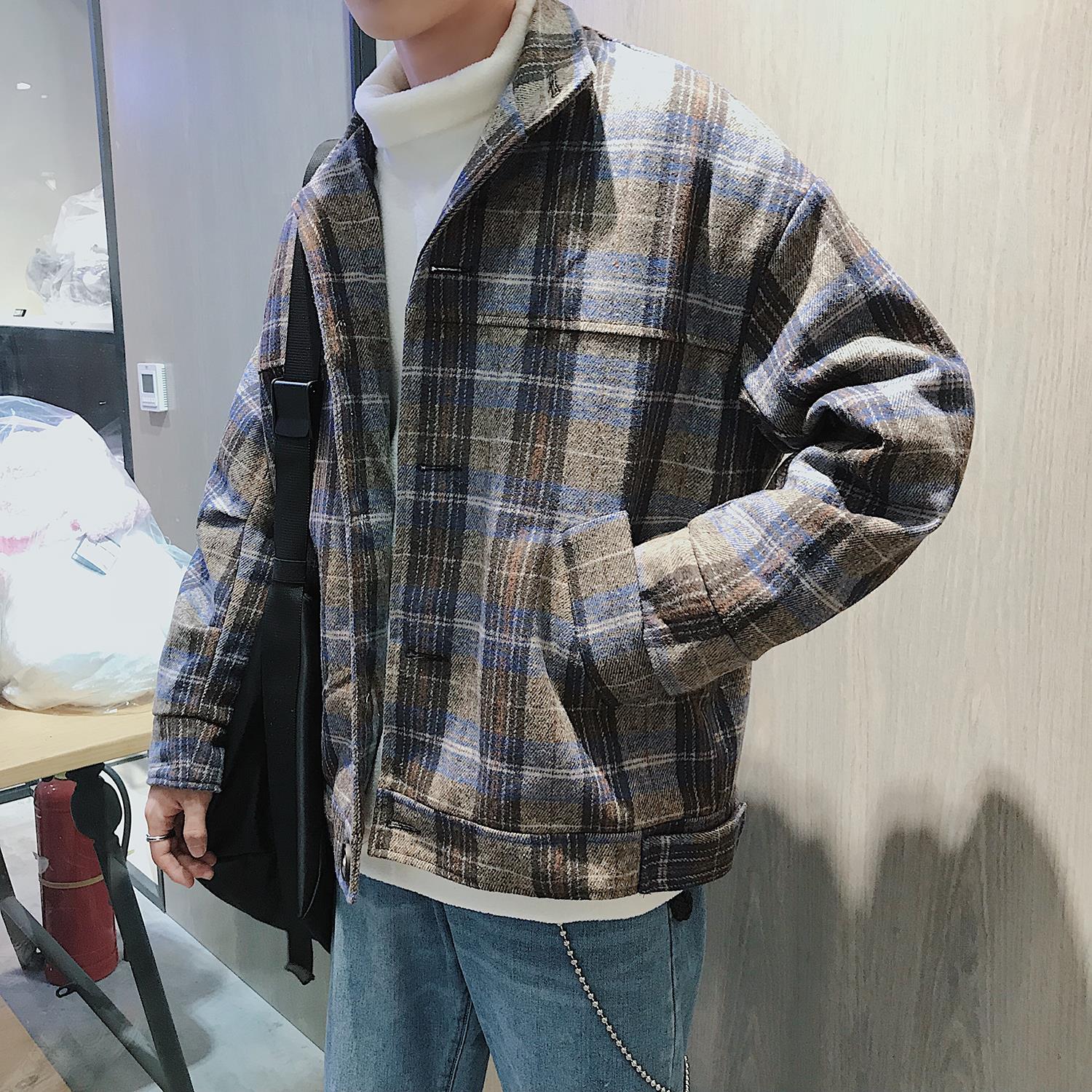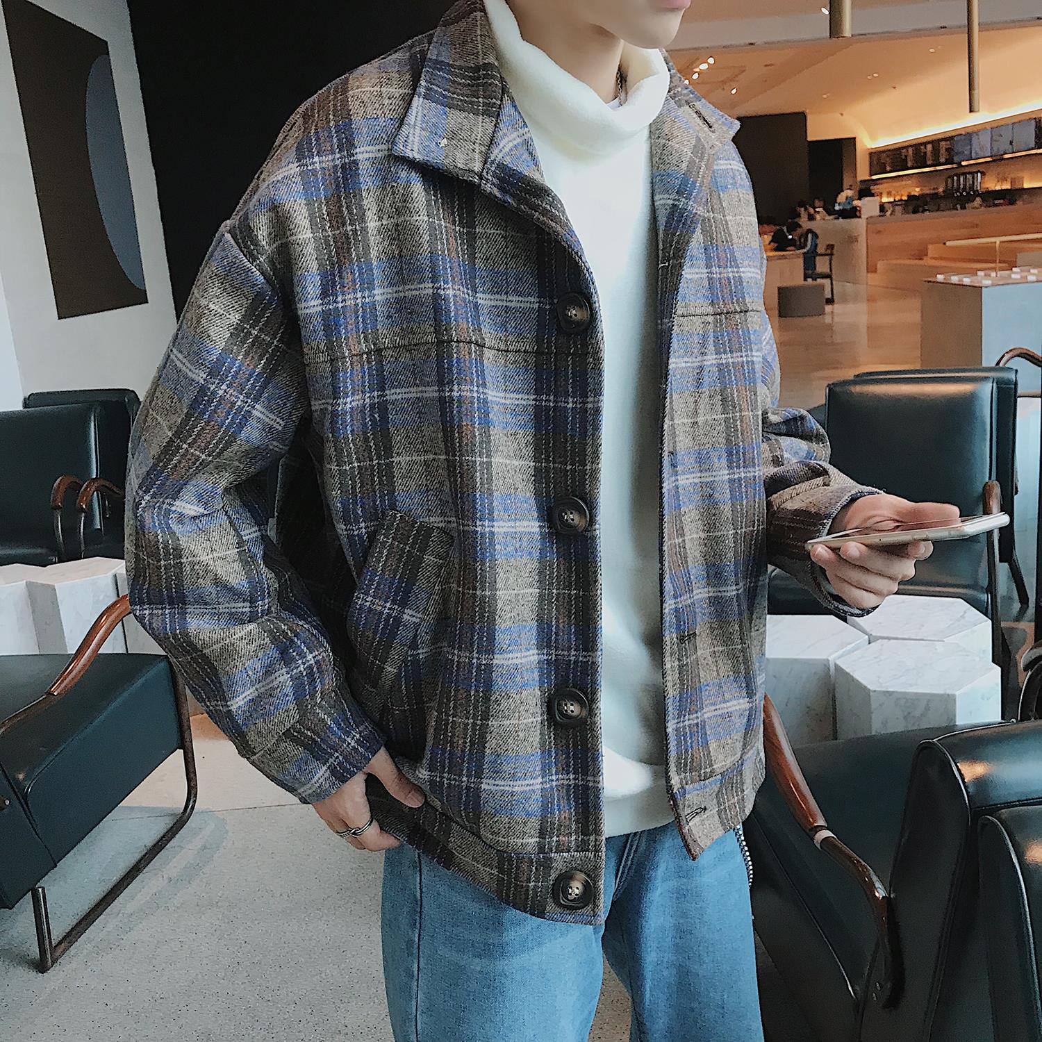 文藝男女店短款秋冬寬松毛呢大衣韓版男士潮流格子英倫風冬季外套