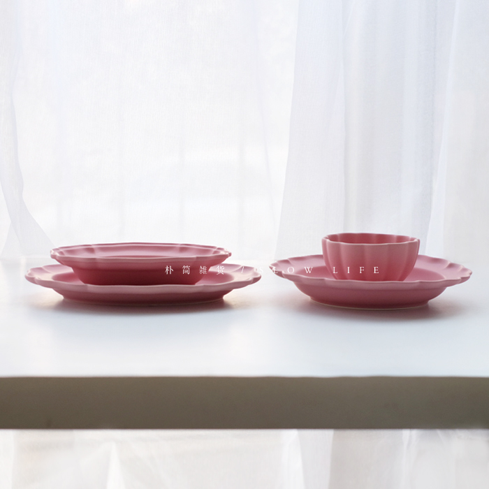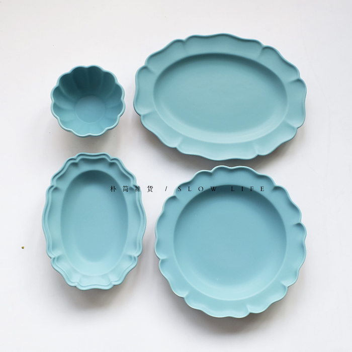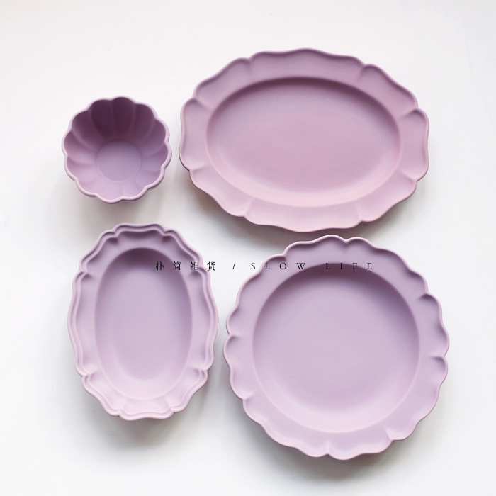 樸簡 日本作家風啞光磨砂陶瓷花形純色餐盤 橢圓盤深盤 小碗