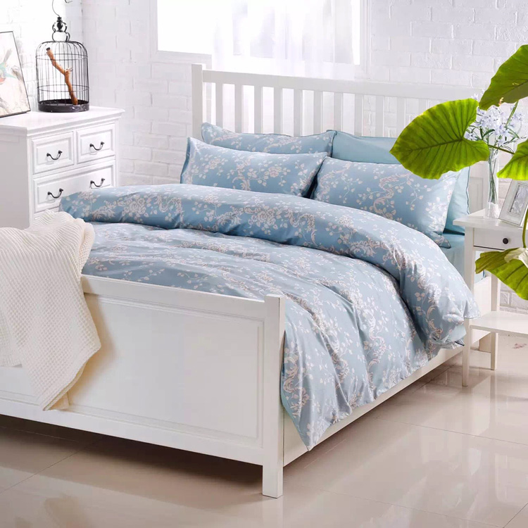 [神秘園]出口美國床品600根紗埃及棉藍色*加大四件套