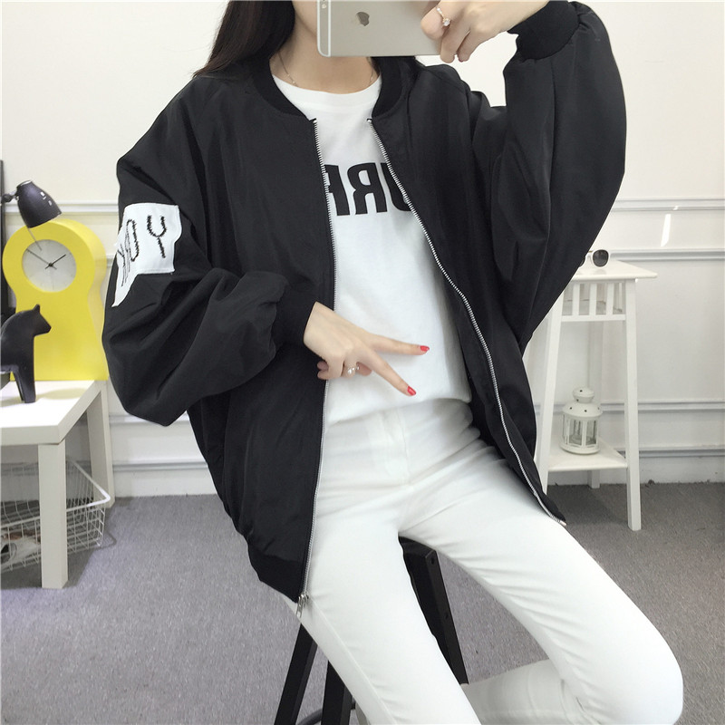/ 2017春裝bf原宿學院風韓版蝙蝠袖棒球服女寬松百搭學生上衣外套潮
