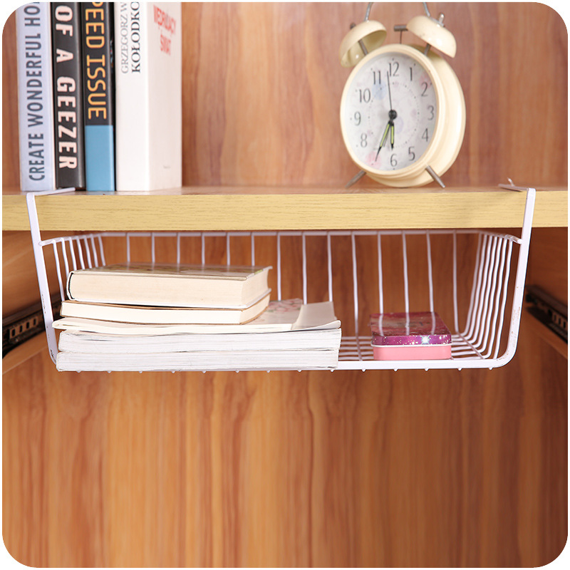 / 廚房櫥柜隔板下掛籃衣柜收納架宿舍辦公桌掛架鐵藝支架整理置物架