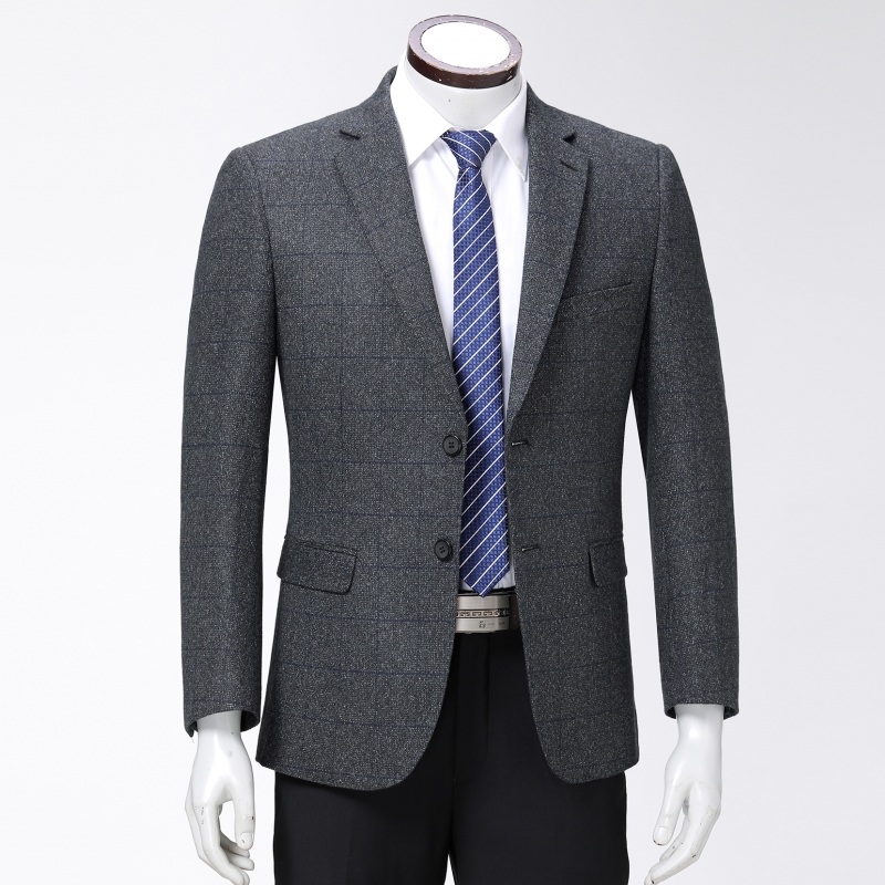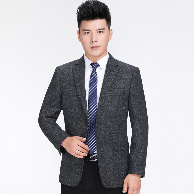 / 秋季品牌中年男士羊毛西服商務休閑男裝格子修身免燙單件西裝外套