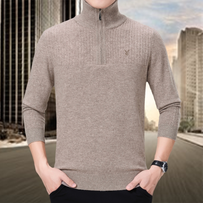 / 冬裝花花公子正品中年男士純羊絨毛衣休閑男裝拉鏈高領加厚羊毛衫