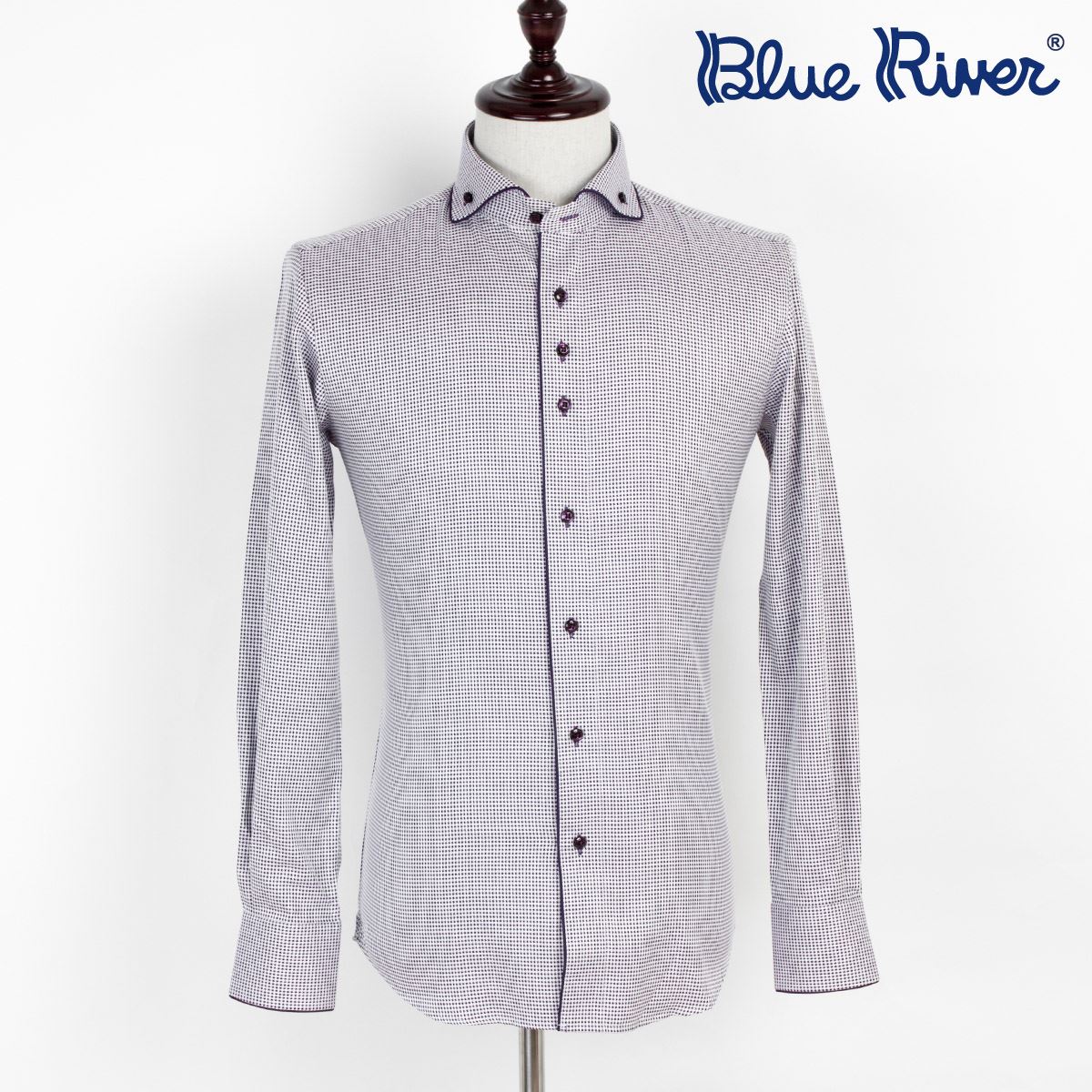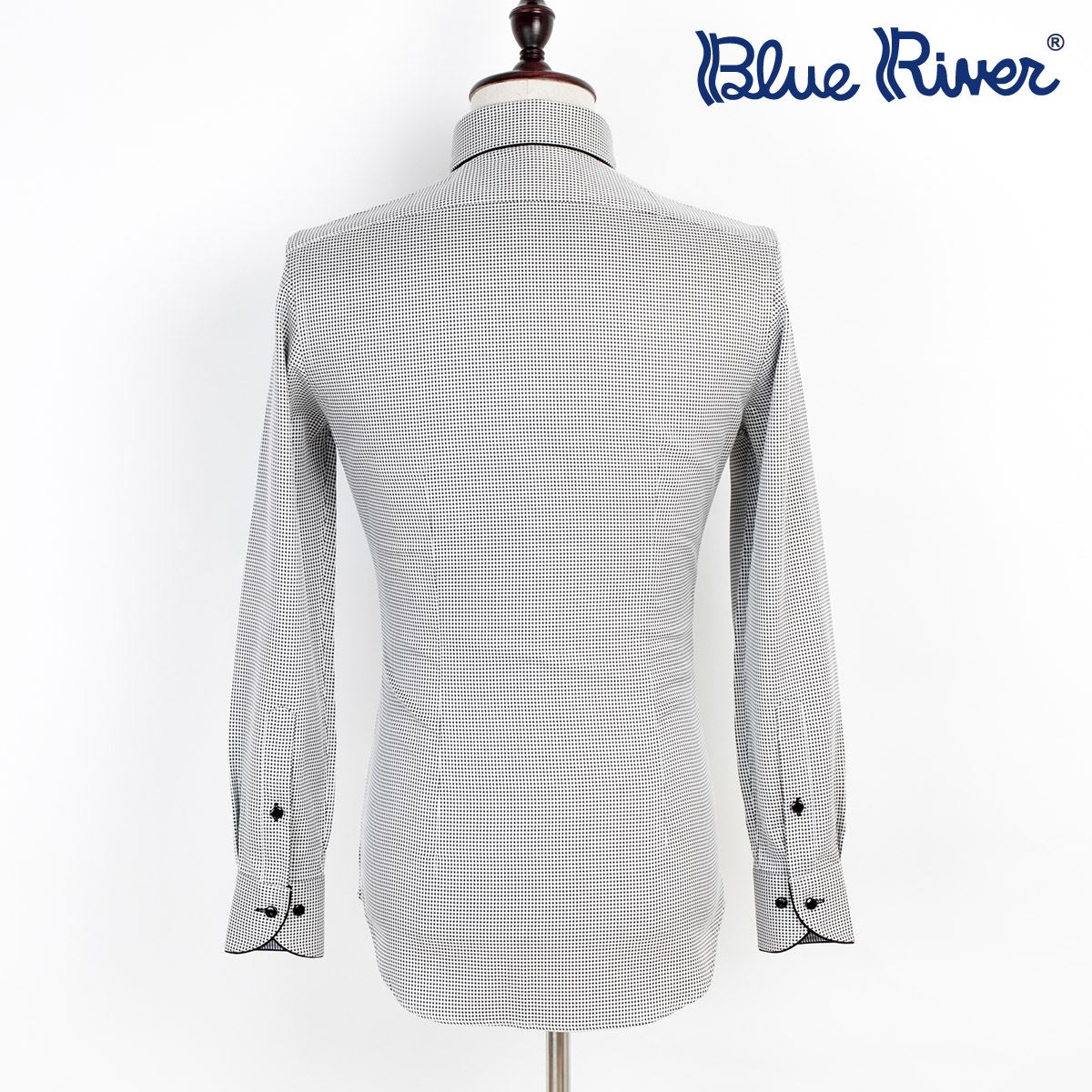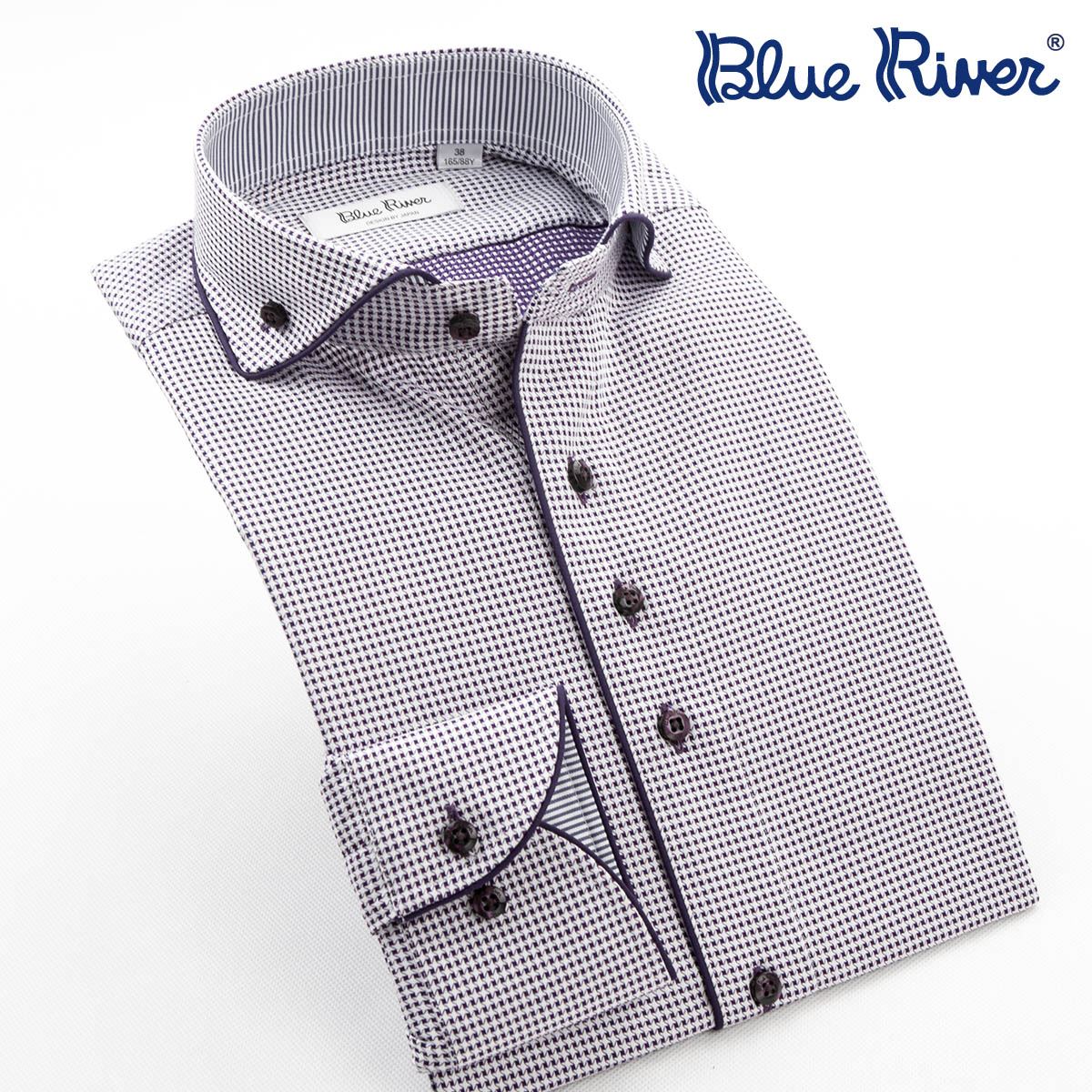 / 藍河新款 溫莎領高支棉長袖襯衫男士灰色細格子商務休閑襯衣