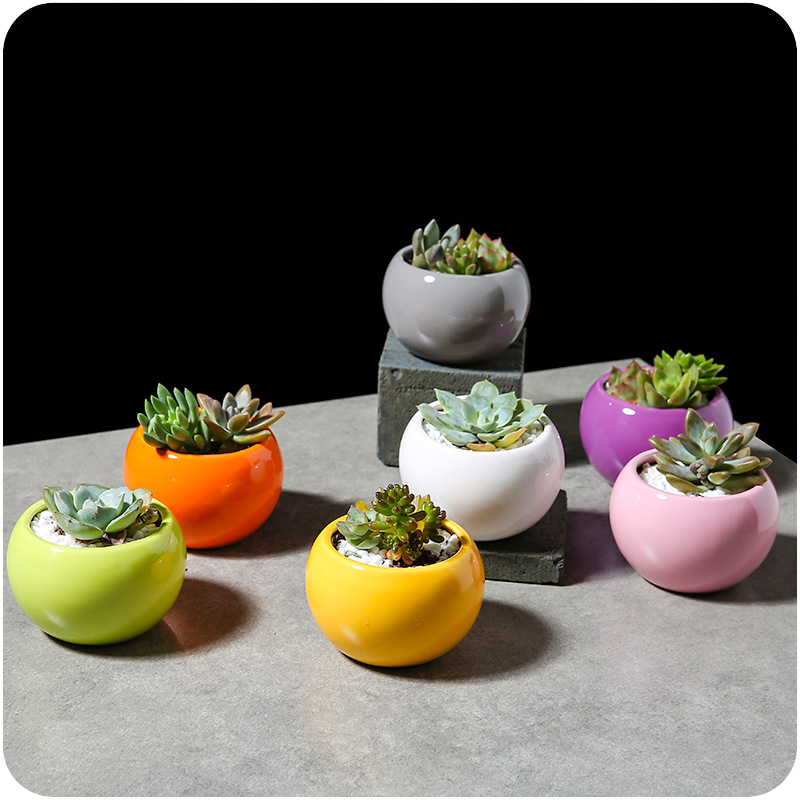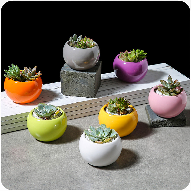 / 現代簡約多肉植物陶瓷花盆彩色個性大肚圓球花卉植物光滑精致花器