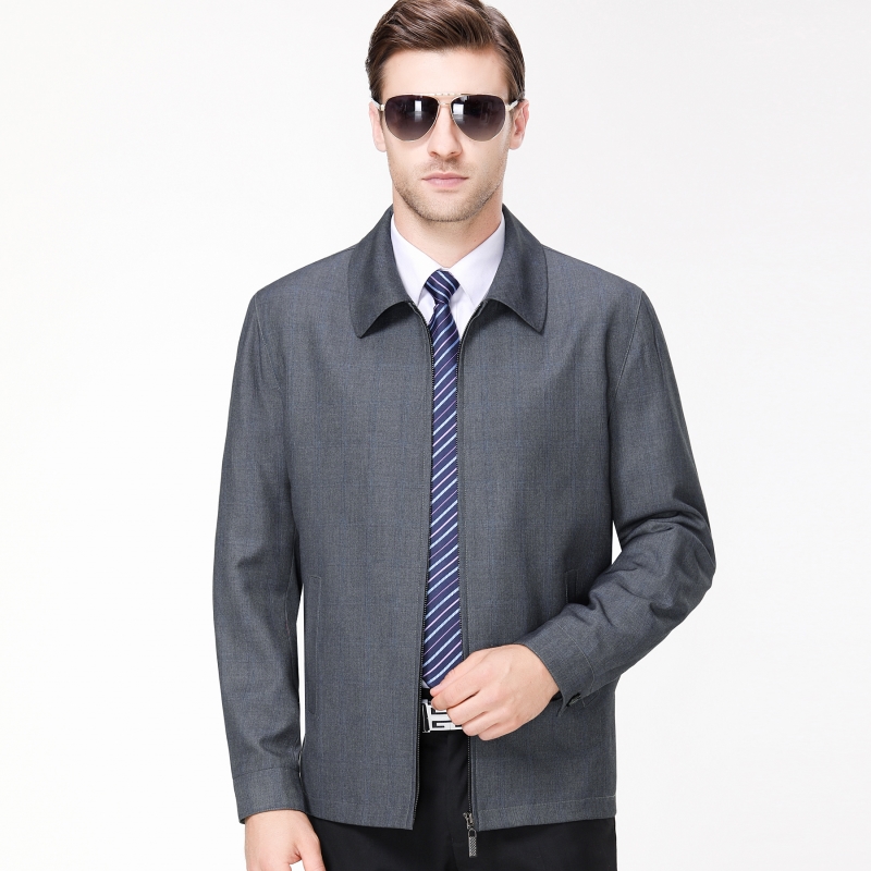 / 2018新款秋裝品牌中年男士夾克商務男爸爸裝翻領格子外套薄款大碼