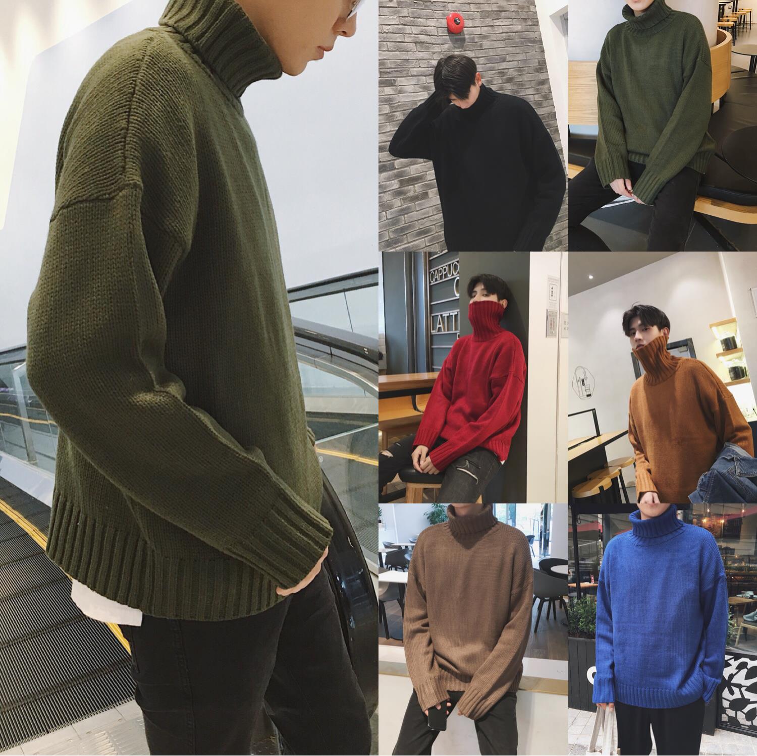 高領毛衣男士韓版潮流情侶原宿風寬松針織衫外套男秋冬裝2018新款
