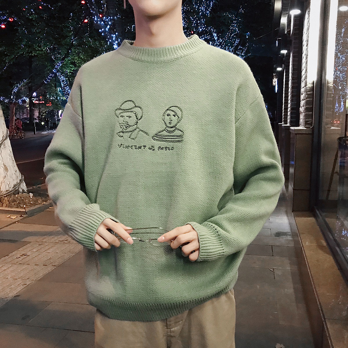 / 男士針織衫潮流高領毛衣外套新款秋季圓領套頭男裝衣服男韓版秋裝