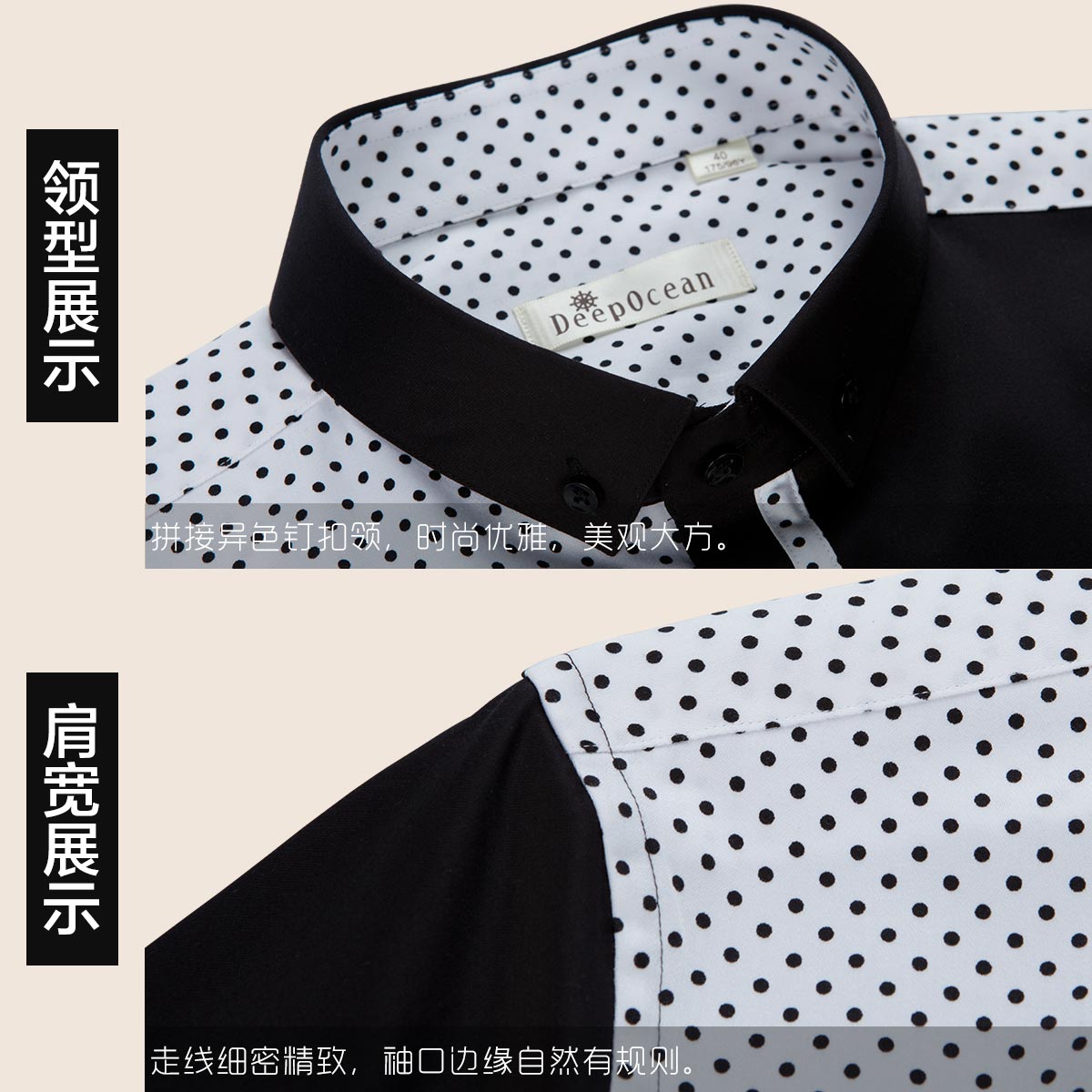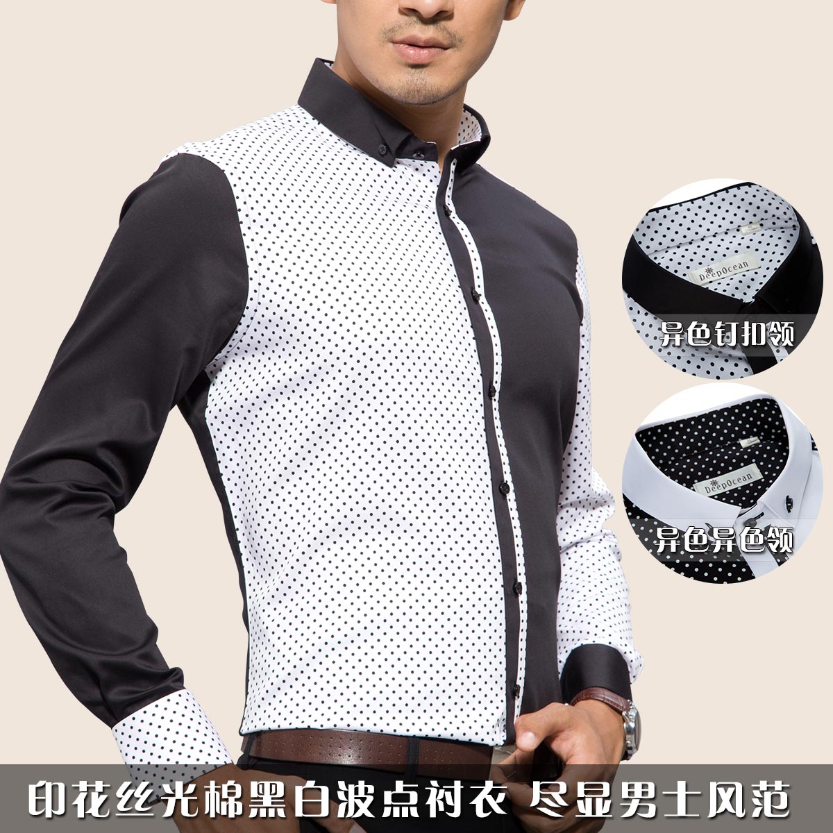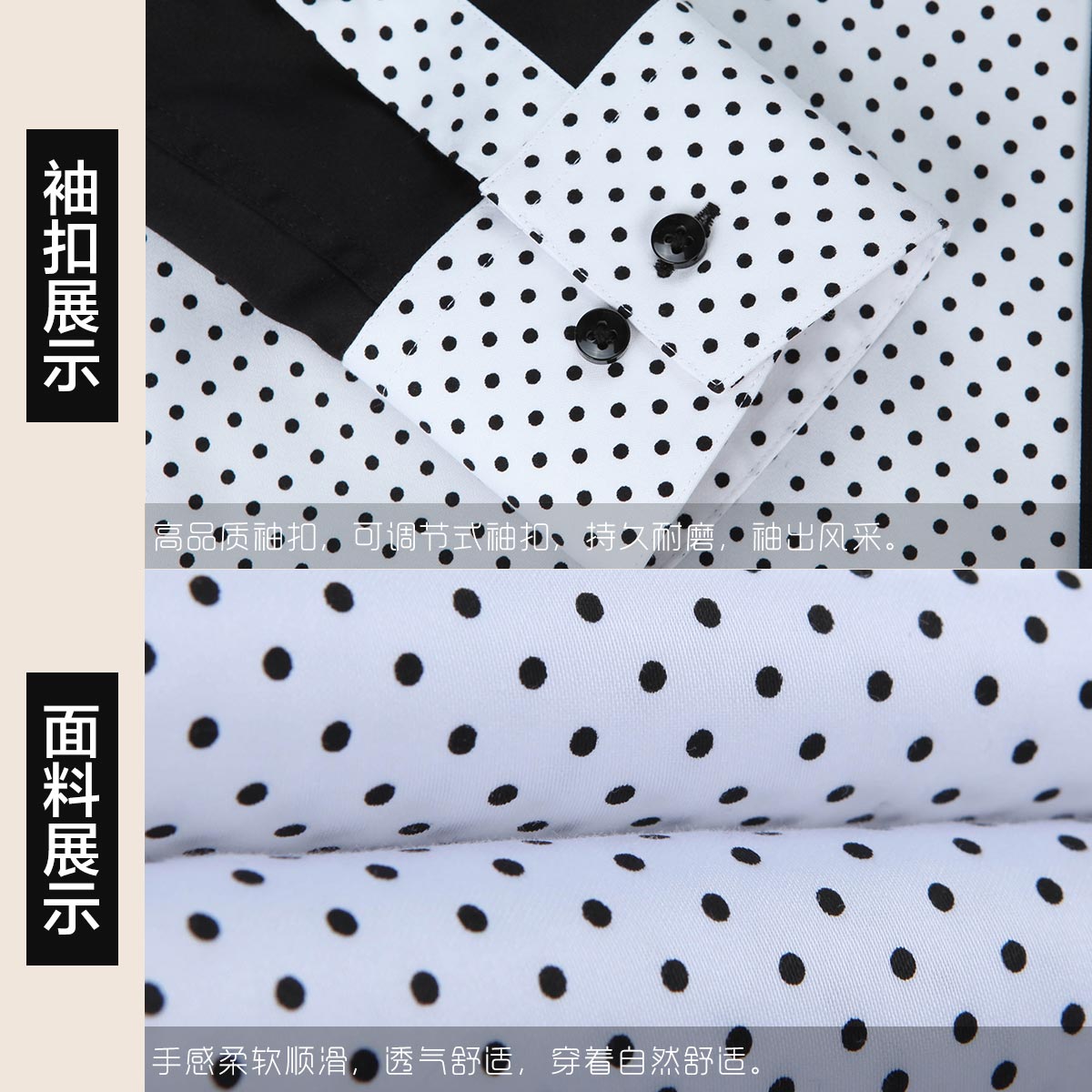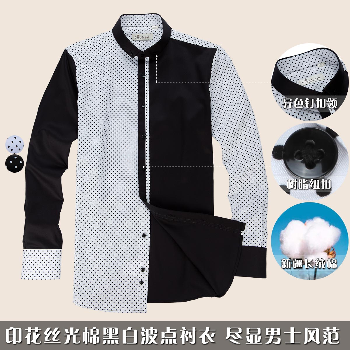 / 男士拼接長袖襯衫男雙絲光棉黑白免燙韓版修身發型師波點襯衣秋裝