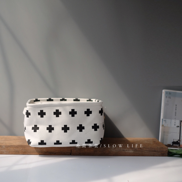 / 樸簡|北歐ins十字棉麻桌面收納籃收納盒 布藝儲物籃筐家居收納籃
