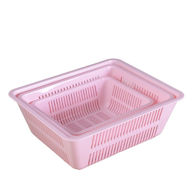 居家百貨桌面塑料鏤空方形收納籃 廚房蔬菜水果瀝水收納桌面籃子